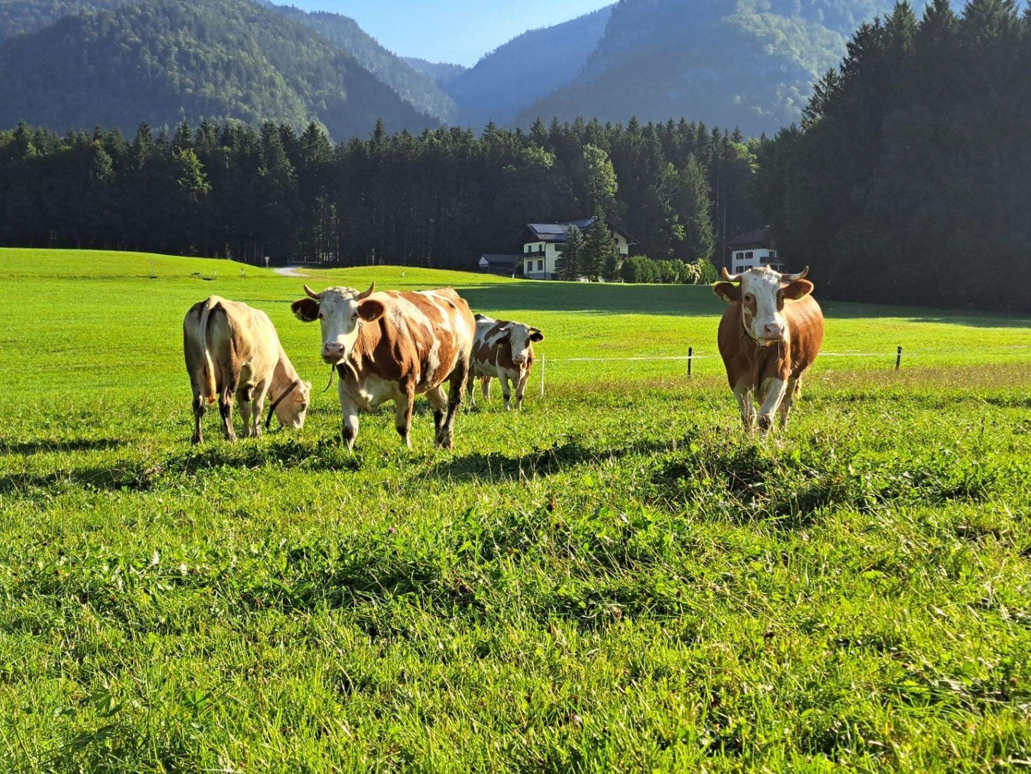 Am Bauernhof selbst gibt es Kühe, Hühner und Katzen. Die Kinder dürfen natürlich mitgehen in den Stall und mithelfen.