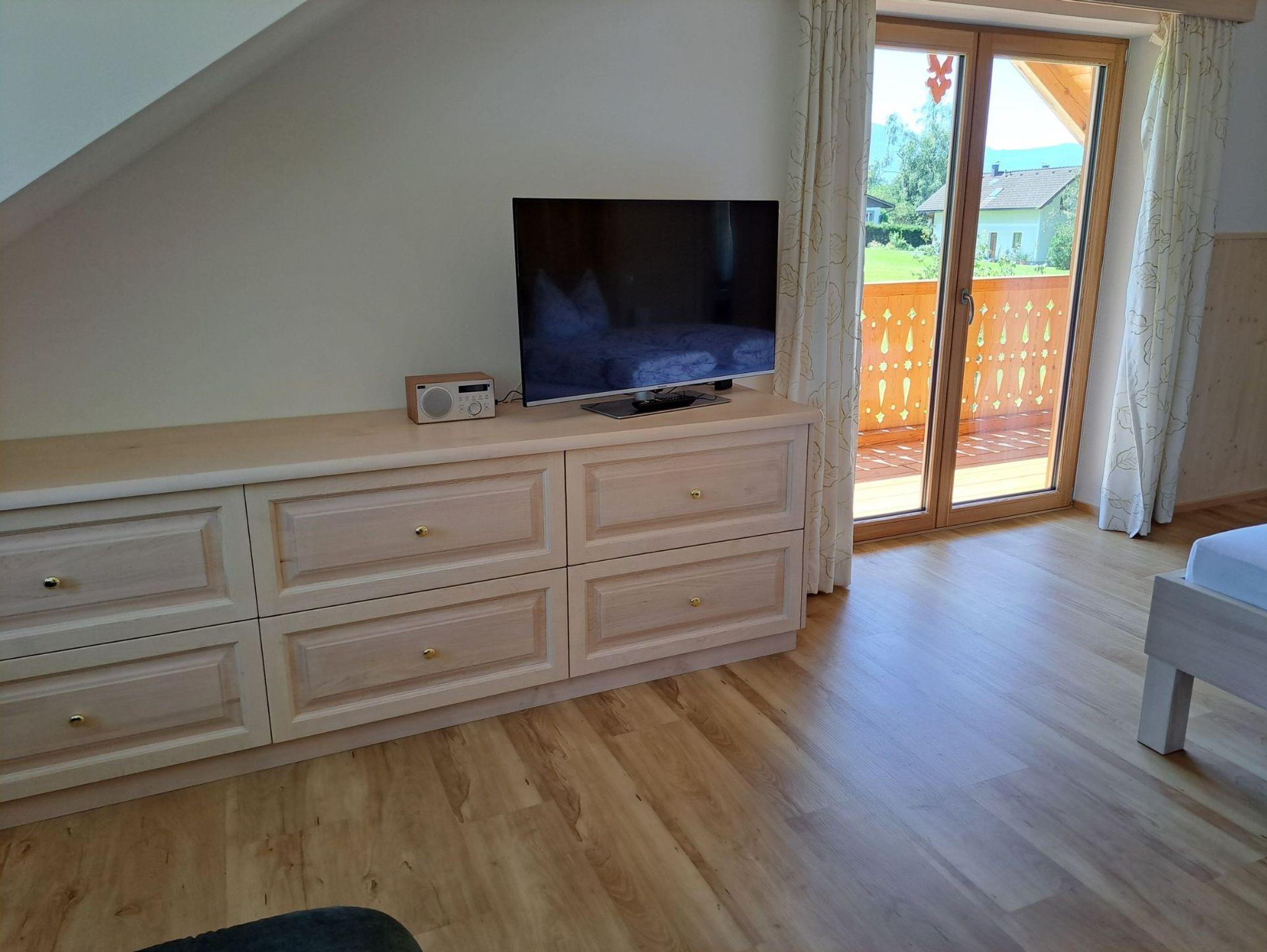 Im ersten Stock befindet sich das erste Schlafzimmer mit Doppelbett großräumigen Kasten und gemütlichen Sitzgelegenheiten zum lesen und zurückziehen. Im zweiten Stock finden Sie dann unser zweites Schlafzimmer mit Doppelbett, einer kleinen Wohnlandschaft, Sat TV, dem kleineren Bad und einer traumhaften Aussicht auf die umliegenden Berge. Vom Schlafzimmer ist auch unser großräumiger Balkon zugänglich. Über eine kleine Treppe im 2 Stock gelangen Sie ins dritte Schlafzimmer (Kinderzimmer) mit zwei Einzelbetten einen Schreibtisch mit zwei Sesseln und viel Platz zum spielen.