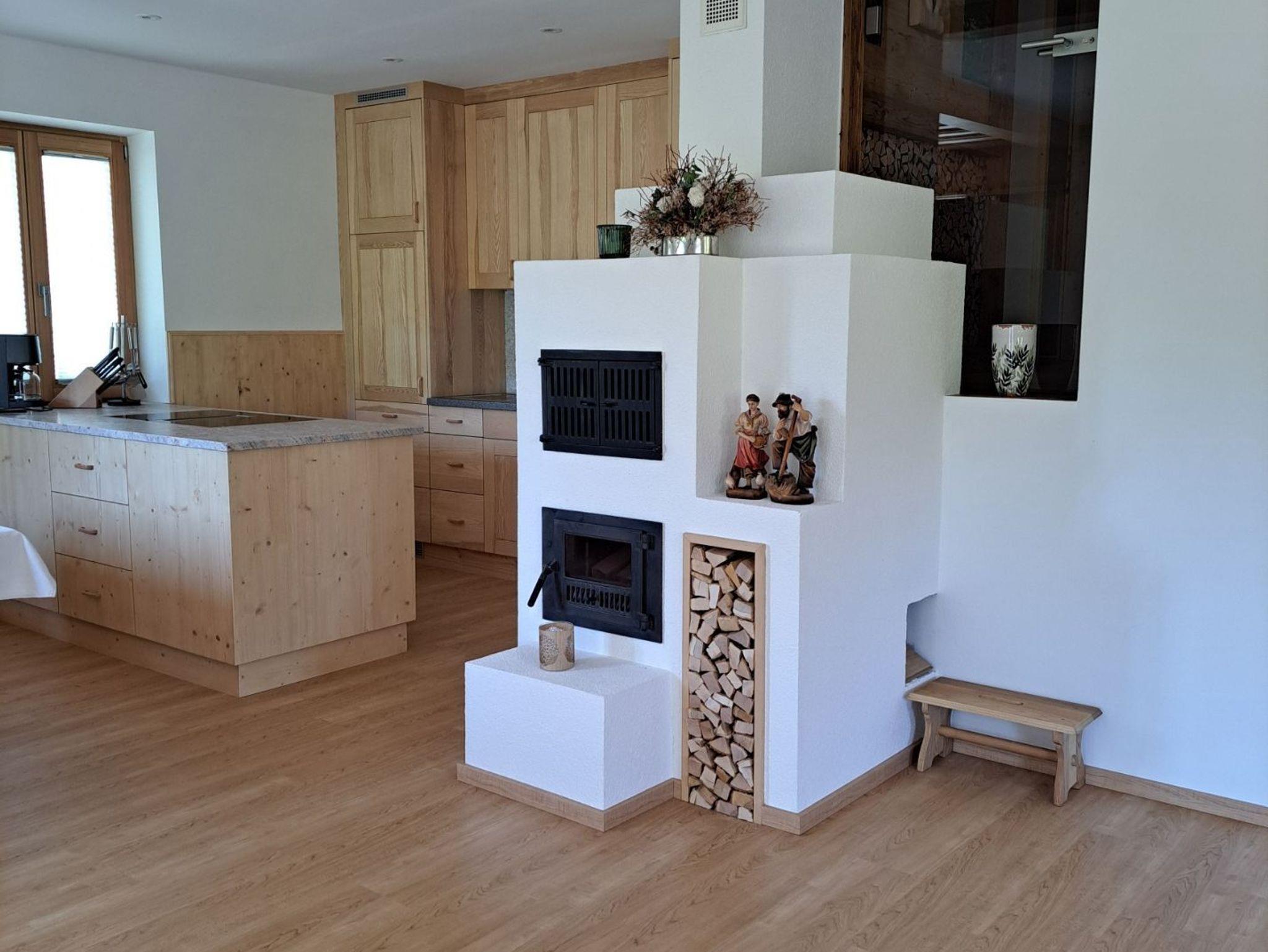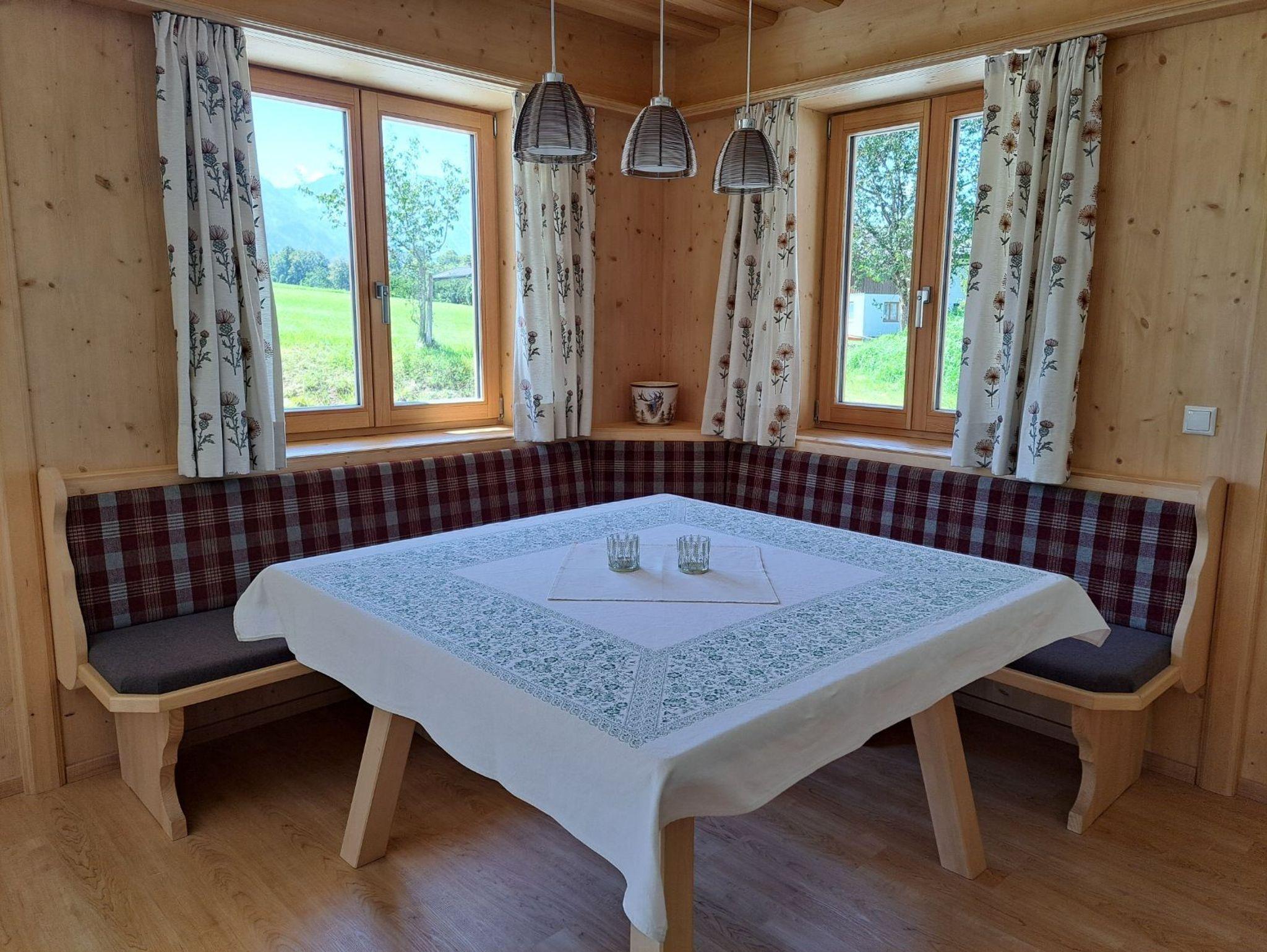 Die Hütte verfügt über einen Wohn/Essbereich mit Sitzecke, Sat-TV und Holzofen zum selber einheizen, wenn man will. Natürlich verfügt die Hütte über eine Bodenheizung, sollten Sie nicht selbst heizen wollen.