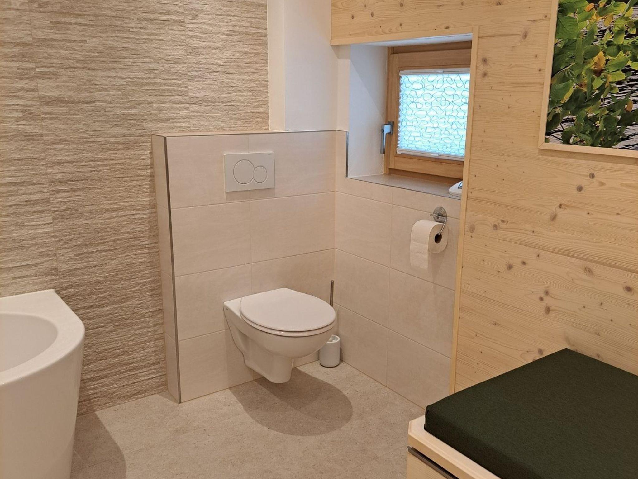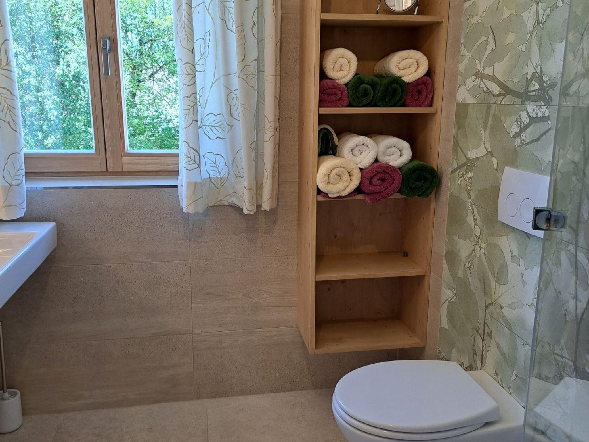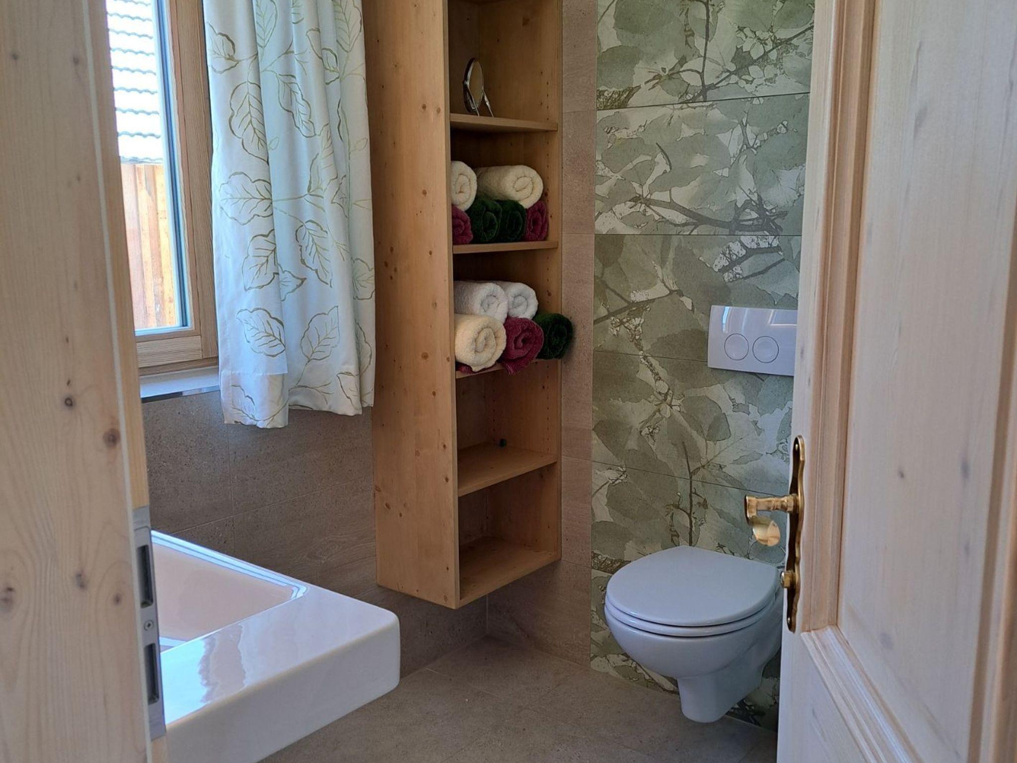 Auch das Badezimmer befindet sich im Erdgeschoss mit Badewanne und Dusche in einem sowie der Toilette. Bade- und Handtücher stehen selbstverständlich zur Verfügung.