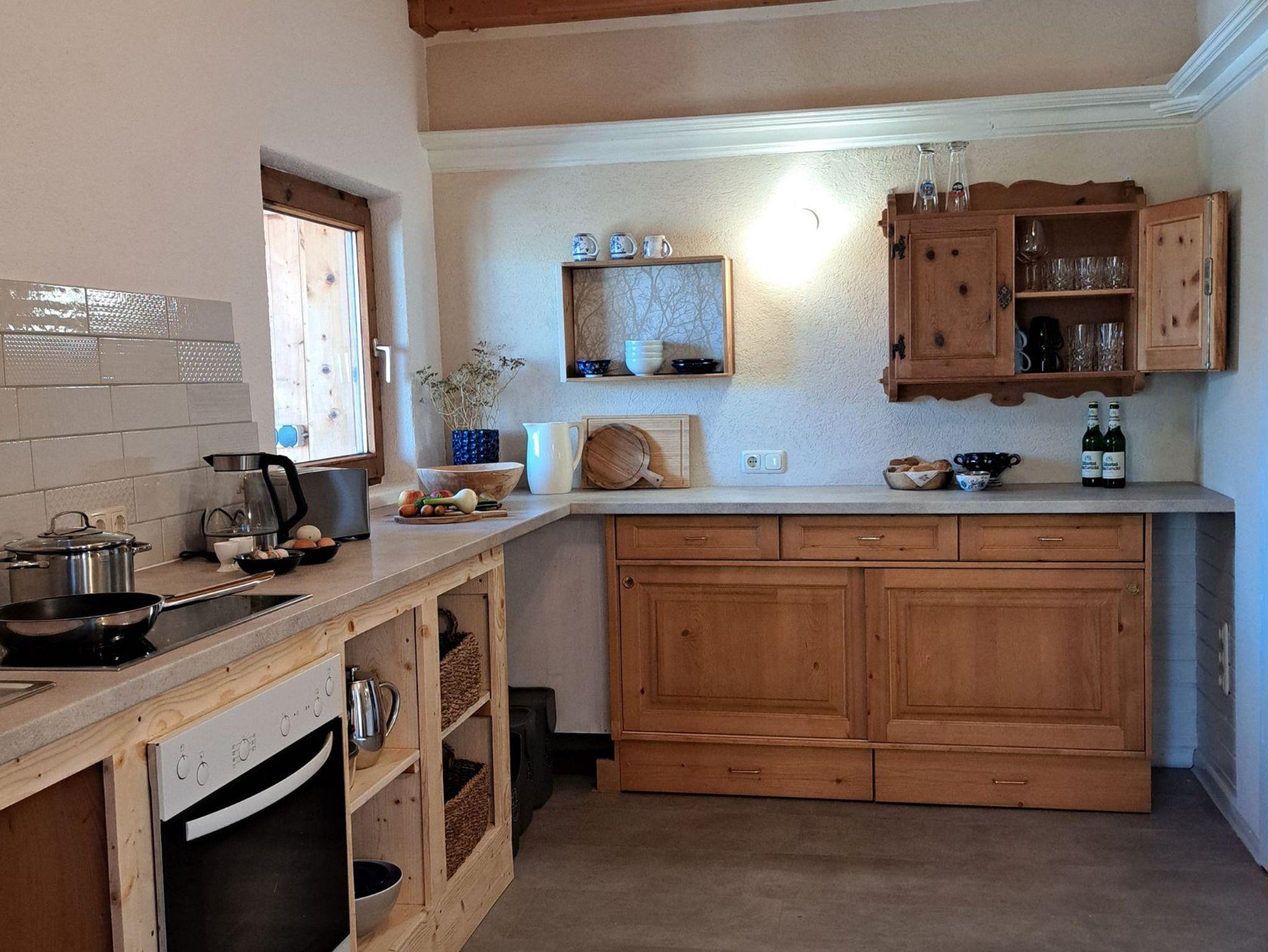 Die große neue Küchen mit Backofen, 4er Cerankochfeld und Spülmaschine bietet allen Komfort den man sich im Urlaub wünscht! Von hier geht es auf die Terrasse oder in den Garten.