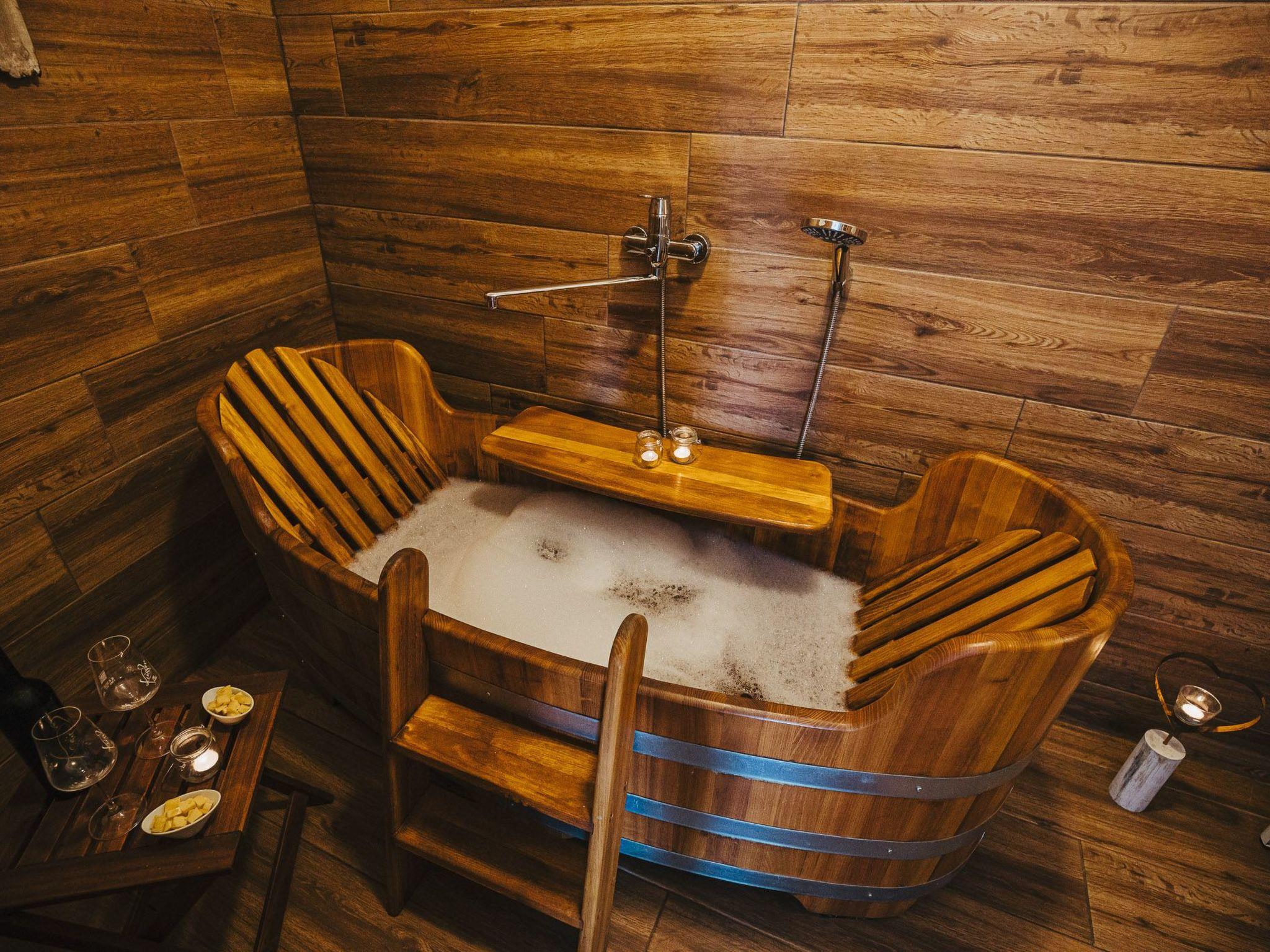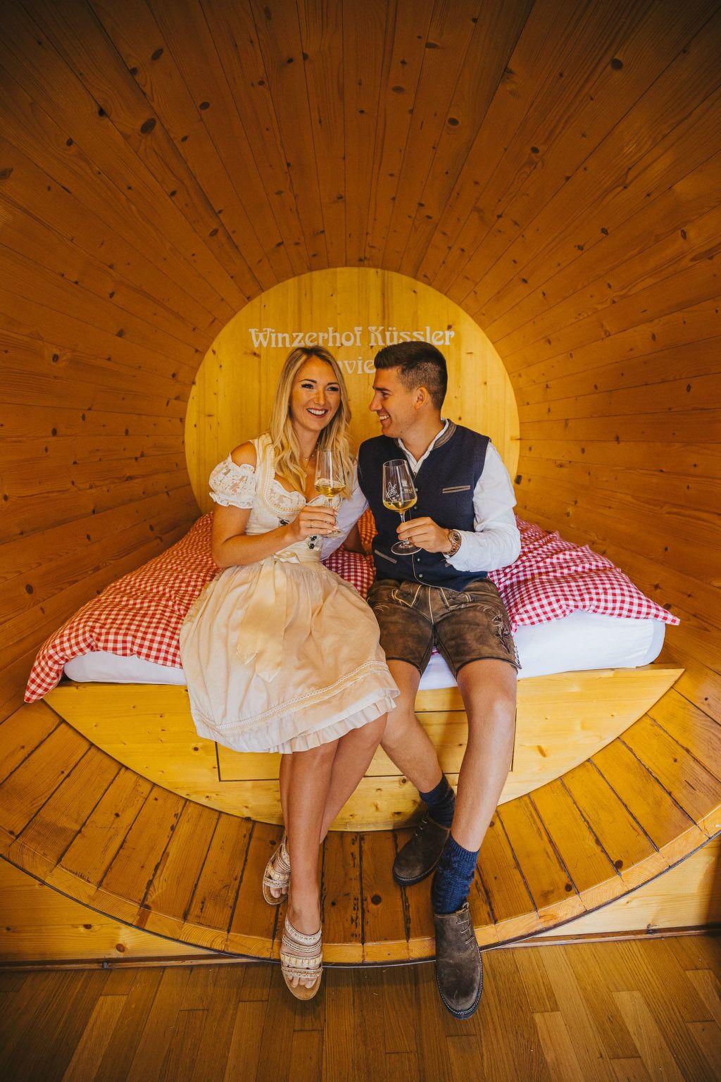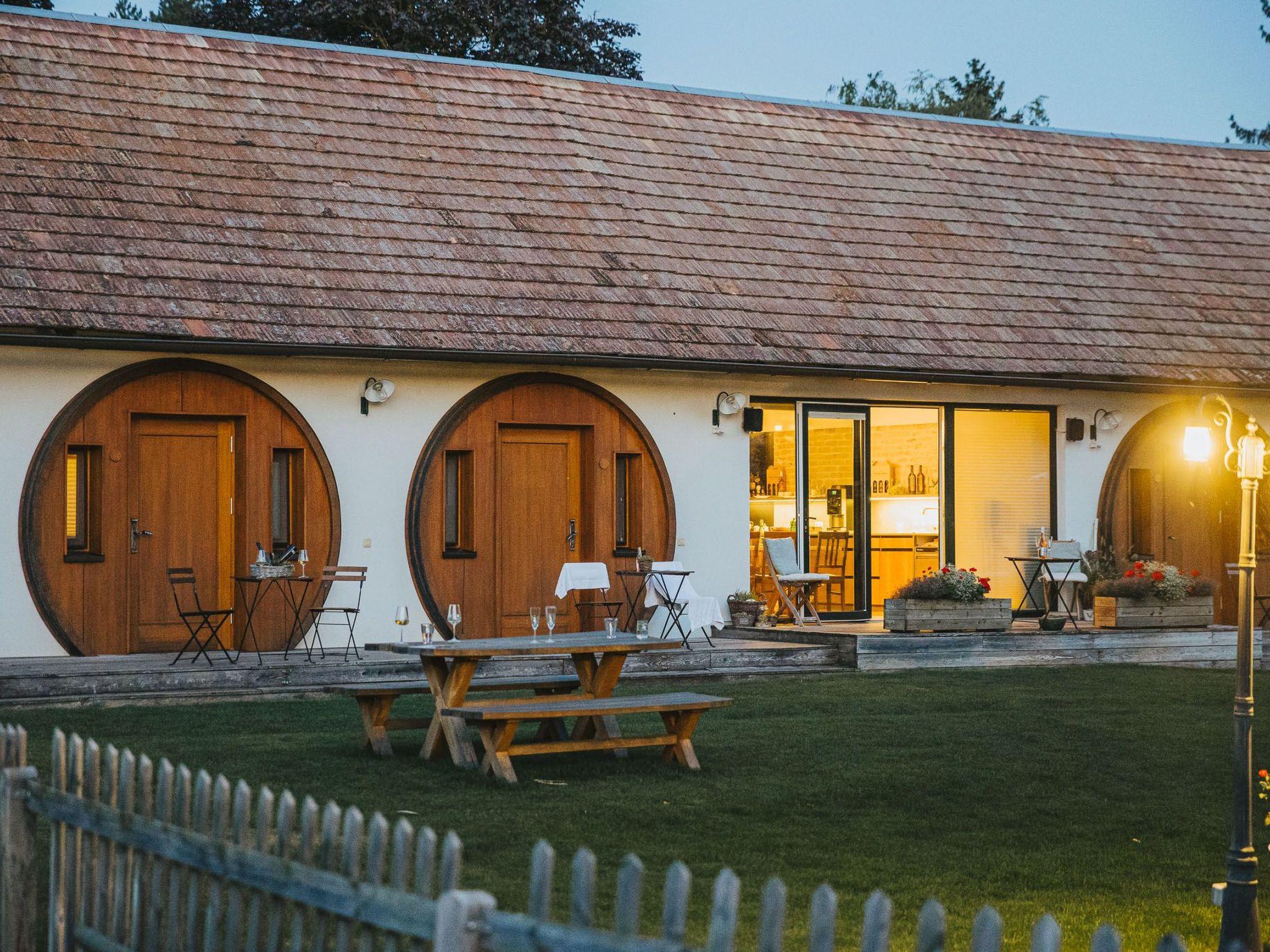 You will be sleeping in a 9000-litre wine barrel, with all the comfort you are accustomed to. The wine barrel suite has a wellness shower, a WC, seating, a fully-equipped kitchen for shared use. It doesn’t get cosier or more romantic than this.