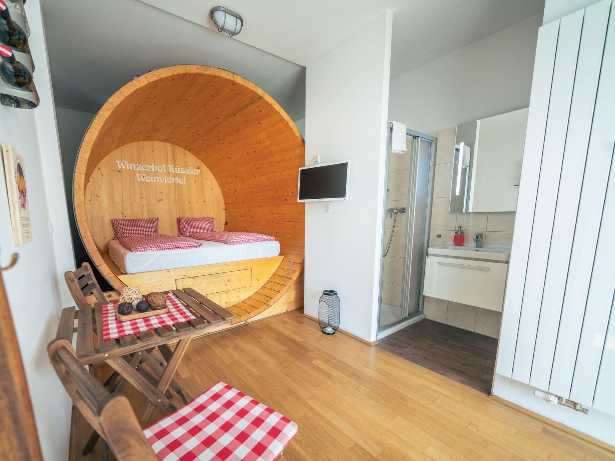 You can experience life on the wine-growing estate directly and authentically and take part in wine tasting in the 300-year-old cellar vault. In the morning you can enjoy breakfast in the light “Weinviertler Stubn”. It is an ideal hiking and cycling area, characterised by many castles. There are ideal shopping facilities in Vienna (30km away) and Bratislava (40km away).