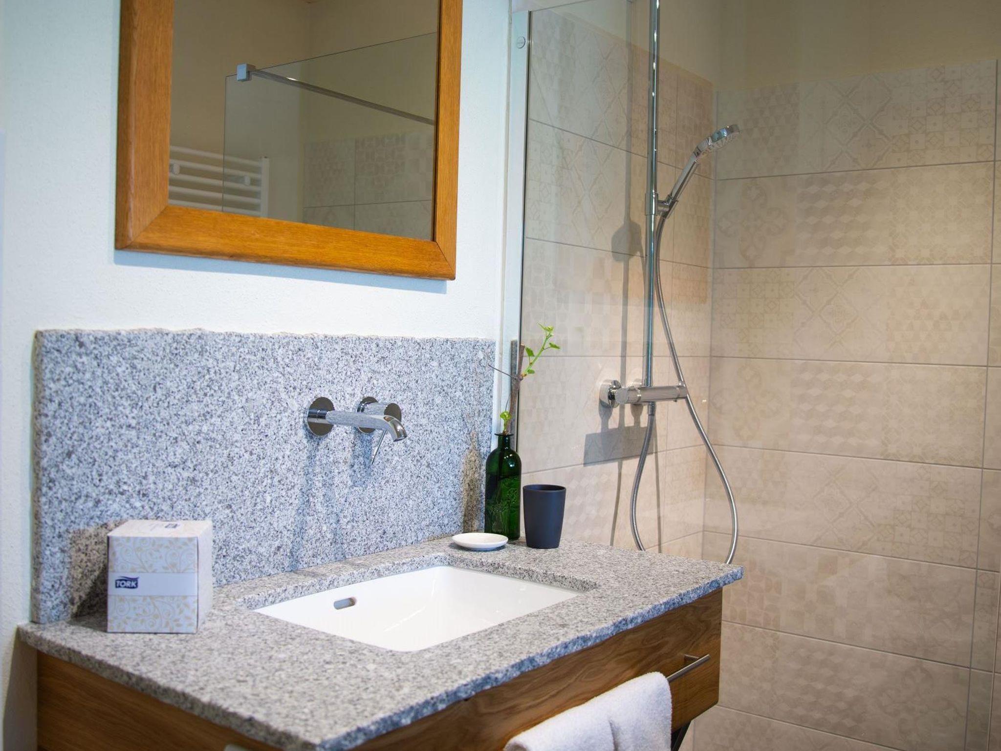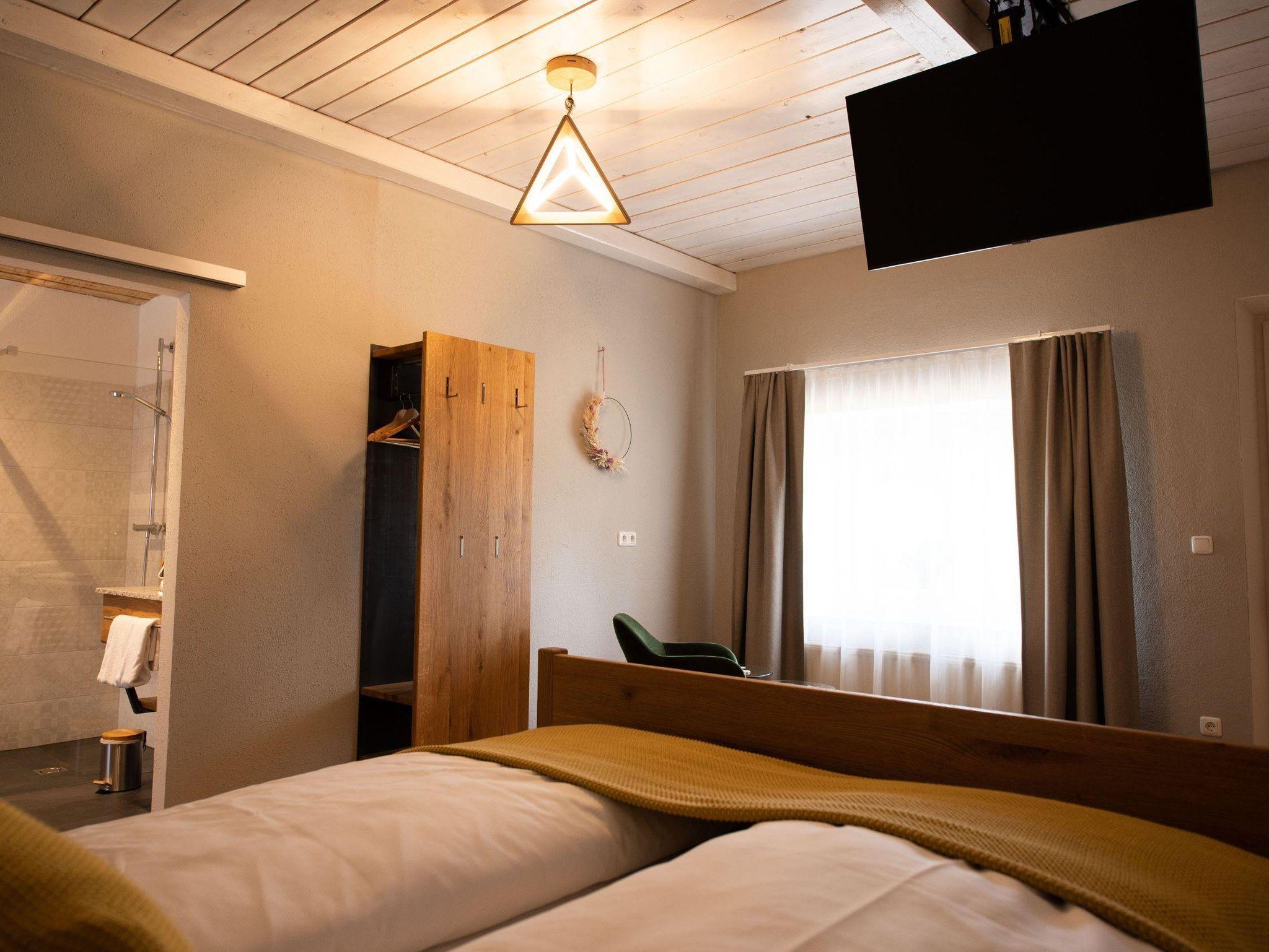 Das Naturzimmer Abendlicht bietet ein gemütliches Doppelzimmer mit einem separaten Bad, bestehend aus Dusche und WC. Die Betten sind aus hochwertigem Vollholz, speziell Eiche gefertigt, was für eine natürliche und warme Atmosphäre sorgt. Die Böden sind ebenfalls aus Eiche Naturboden gefertigt, was das Zimmer mit einem authentischen Ambiente ausstattet. Lehmputz und andere Naturmaterialien tragen zur gesunden Raumluft bei und unterstreichen den ökologischen Ansatz des Zimmers.