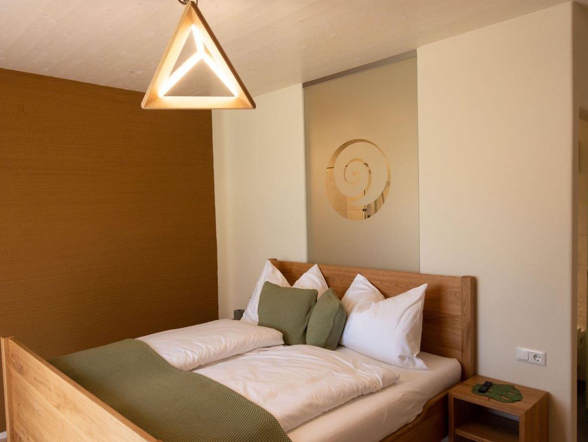Das Naturzimmer Sonnentanz bietet ein gemütliches Doppelzimmer mit einem separaten Bad, bestehend aus Dusche und WC. Die Betten sind aus hochwertigem Vollholz, speziell Eiche gefertigt, was für eine natürliche und warme Atmosphäre sorgt. Die Böden sind ebenfalls aus Eiche Naturboden gefertigt, was das Zimmer mit einem authentischen Ambiente ausstattet. Lehmputz und andere Naturmaterialien tragen zur gesunden Raumluft bei und unterstreichen den ökologischen Ansatz des Zimmers.
