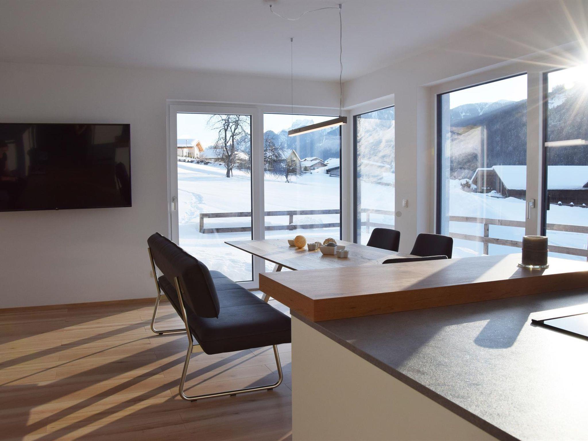 Durch die vielen bodentiefen Fenster und Türen bekommen Sie viel Licht und Sonne mit Sicht bis zu den Lienzer Dolomiten, den Sextener Dolomiten und dem karnischen Kamm.