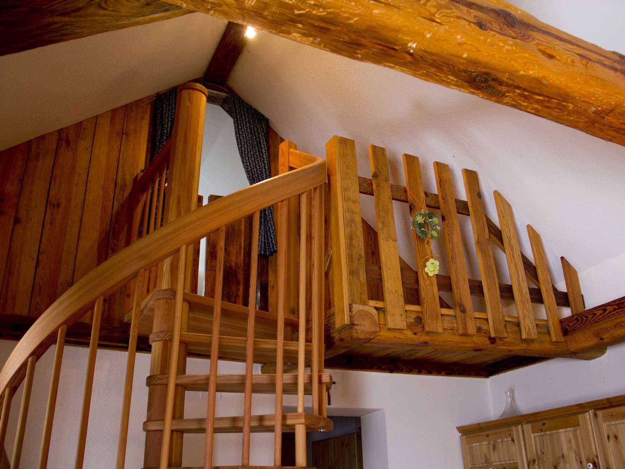 Einrichtung: voll ausgestattete Wohnküche, Badezimmer mit Dusche u. Waschmaschine, WC (getrennt), 1 Doppelzimmer, 1 Schlafzimmer mit 2 Betten unterm Dach, TV vorhanden