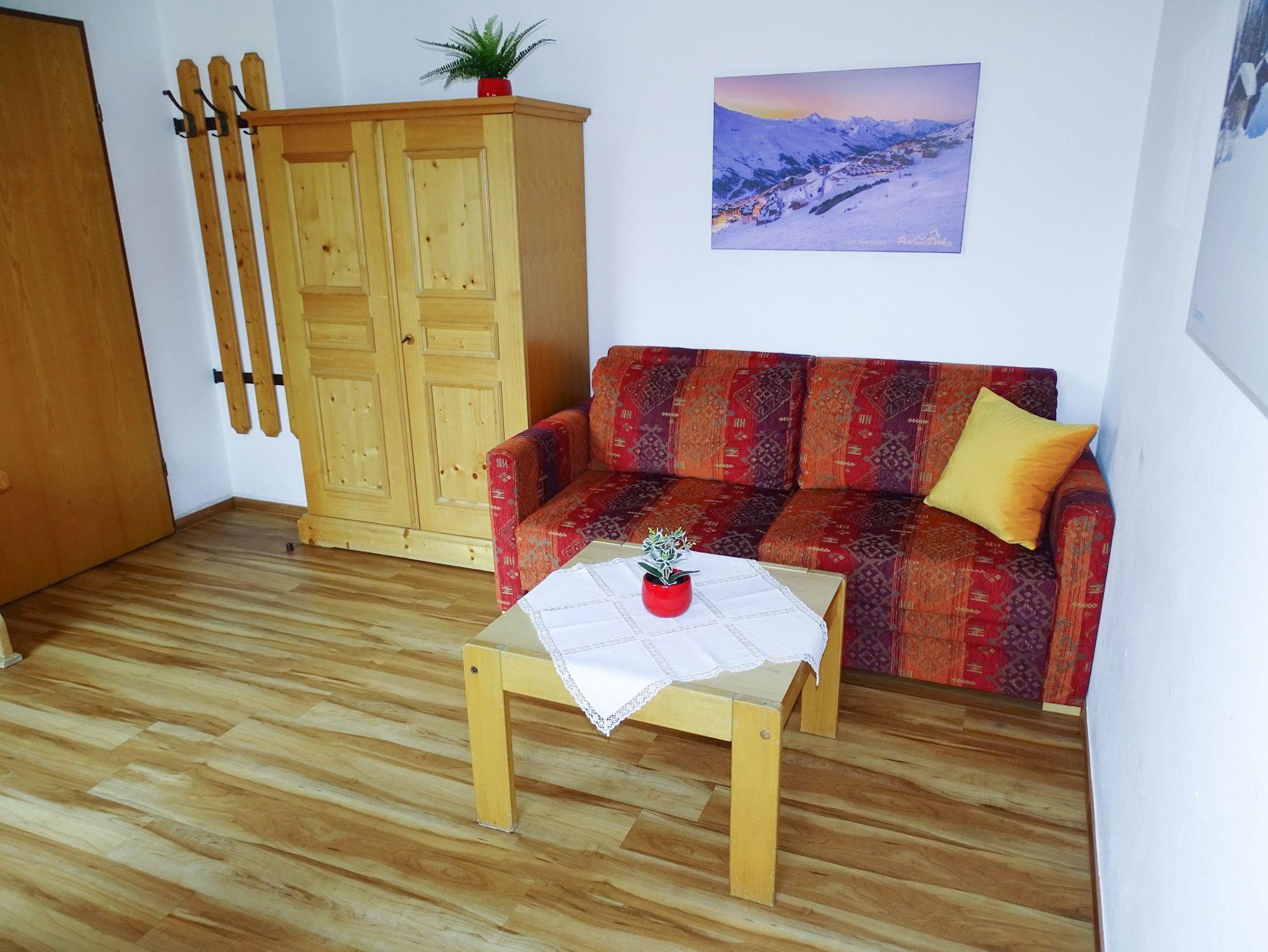 Im Aufenthaltsraum gibt es genügend Platz, um am Abend noch einmal gemütlich beisammen zu sitzen. Die Skier können im Skikeller mit elektrisch beheiztem Skischuhtrockner abgestellt werden. 1 kostenfreier Parkplatz pro Ferienwohnung ist direkt vor dem Haus. Ein Garagenplatz in der Tiefgarage kann auf Wunsch und Anfrage zusätzlich gebucht werden (3 Euro pro PKW und Tag, je nach Verfügbarkeit). Ein Hund pro Wohnung ist gegen Aufpreis willkommen.
