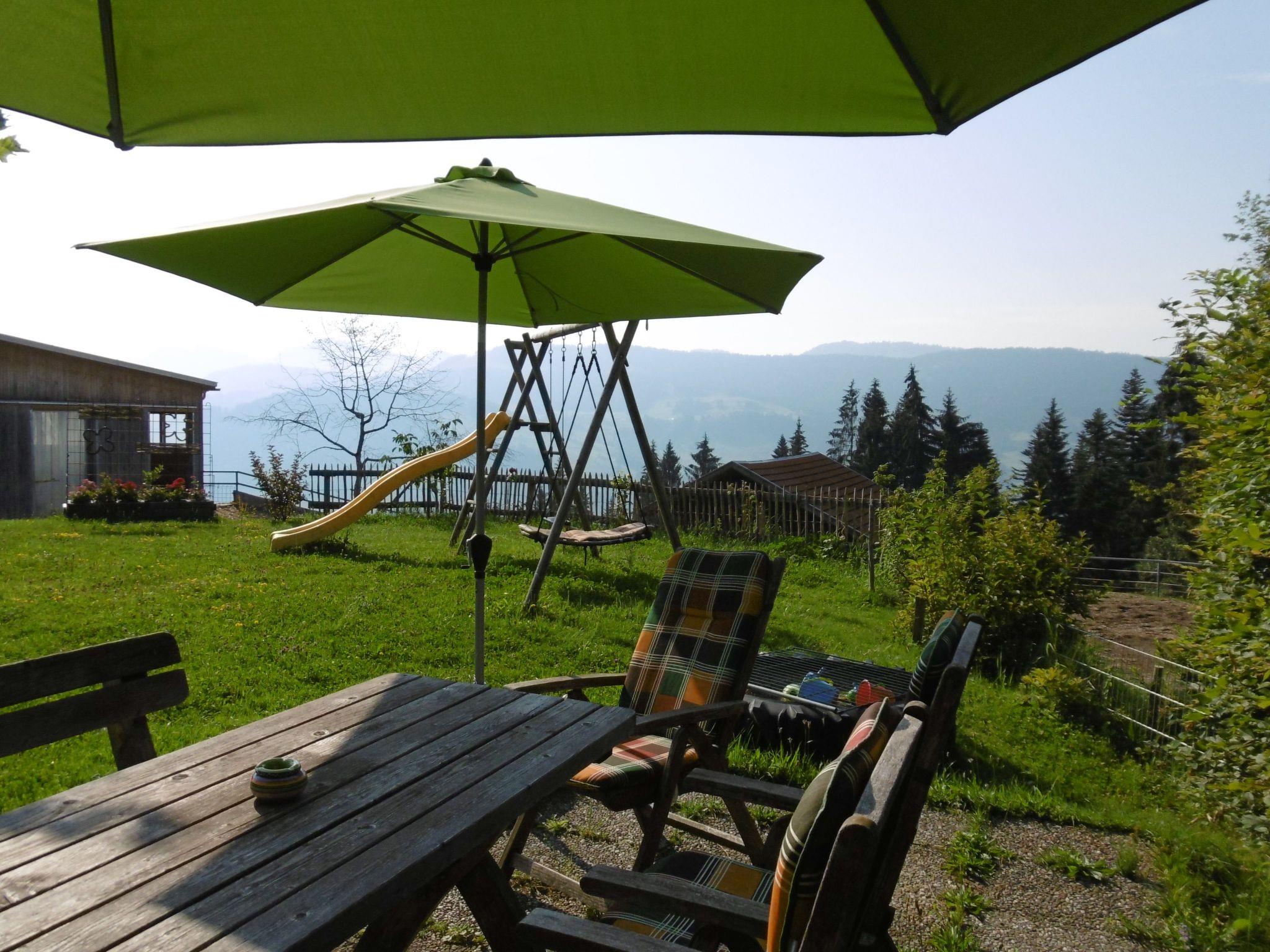 It is possible to book carriage and horse-drawn sledge rides at the farm. There is a pony for children to ride and there are also some small animals. For stays from 3 nights, the Bregenzerwald-Gästecard is included from May to October, for free use of cable cars, swimming pools and buses. The nearest shops are in the village centre of Sulzberg, such as the Adeg Markt village shop, the cheese shop, the Lichtblick gift shop, and the butcher, restaurants such as Alpenblick, Pizze und Pasta, Ochsen and Hochsträßstüble. You can also find a bank, a doctor and a post office in the village centre, There are several swimming pools nearby, 5-15km away, for example the pool sin Oberreute, Hittisau or Lingenau, or the “Aquaria” in Oberstaufen, or alternatively you can swim in the lake, Bodensee. The owner can provide information about current events, also summarised in a brochure, such as trips to Pfänder, the local mountain of our regional capital Bregenz, the Bregenzer Festspiele in the summer, a ride with the Wälderbähnle, a boat trip to the island of Mainau, or visiting a mountain dairy and so on.