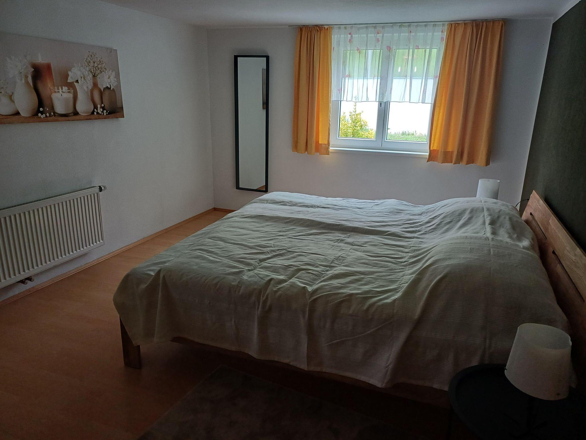 Weiters gibt es ein Doppelbettschlafzimmer mit gemütlichem Wohlfühlambiente. Es bietet einen Schrank mit Kommode und einen seperaten hohen Spiegel. Über eine eigene Terrassentüre gelangen sie vom Schlafzimmer aus ebenfalls direkt auf die Terasse.