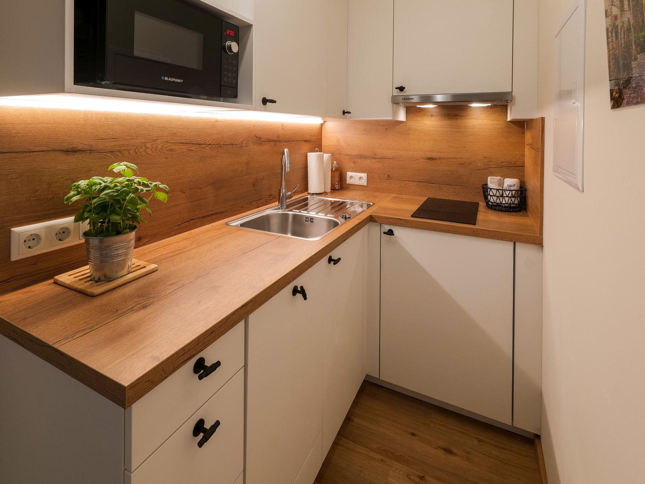 Eine vollausgestattete Küchennische ist im Appartement integriert.