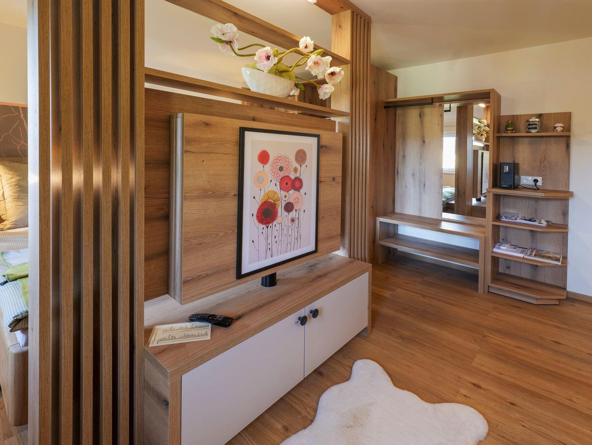 Das Appartement verfügt über einen gemeinsamen Wohn-, Ess- und Schlafbereich mit insgesamt 28m² Wohnfläche und bietet somit Platz für 2 Personen.