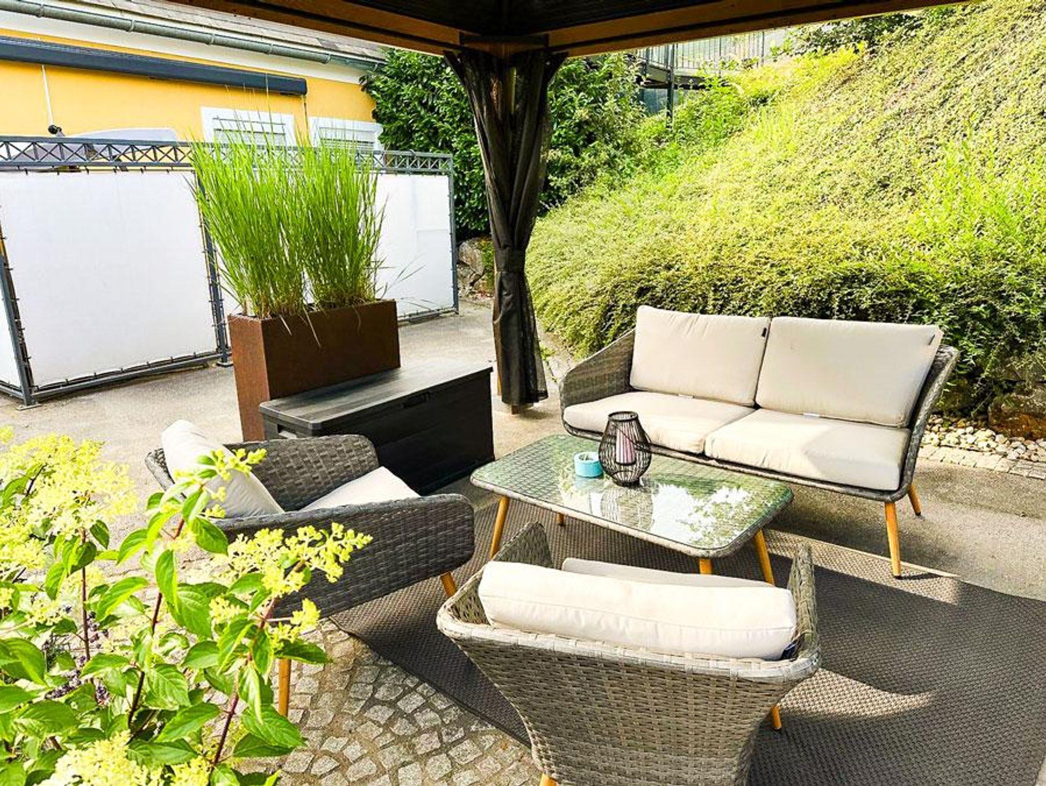 Im ruhigen Außenbereich gibt es eine Sitzgelegenheit, welche von den Unterkunftsgästen benutzt werden kann.