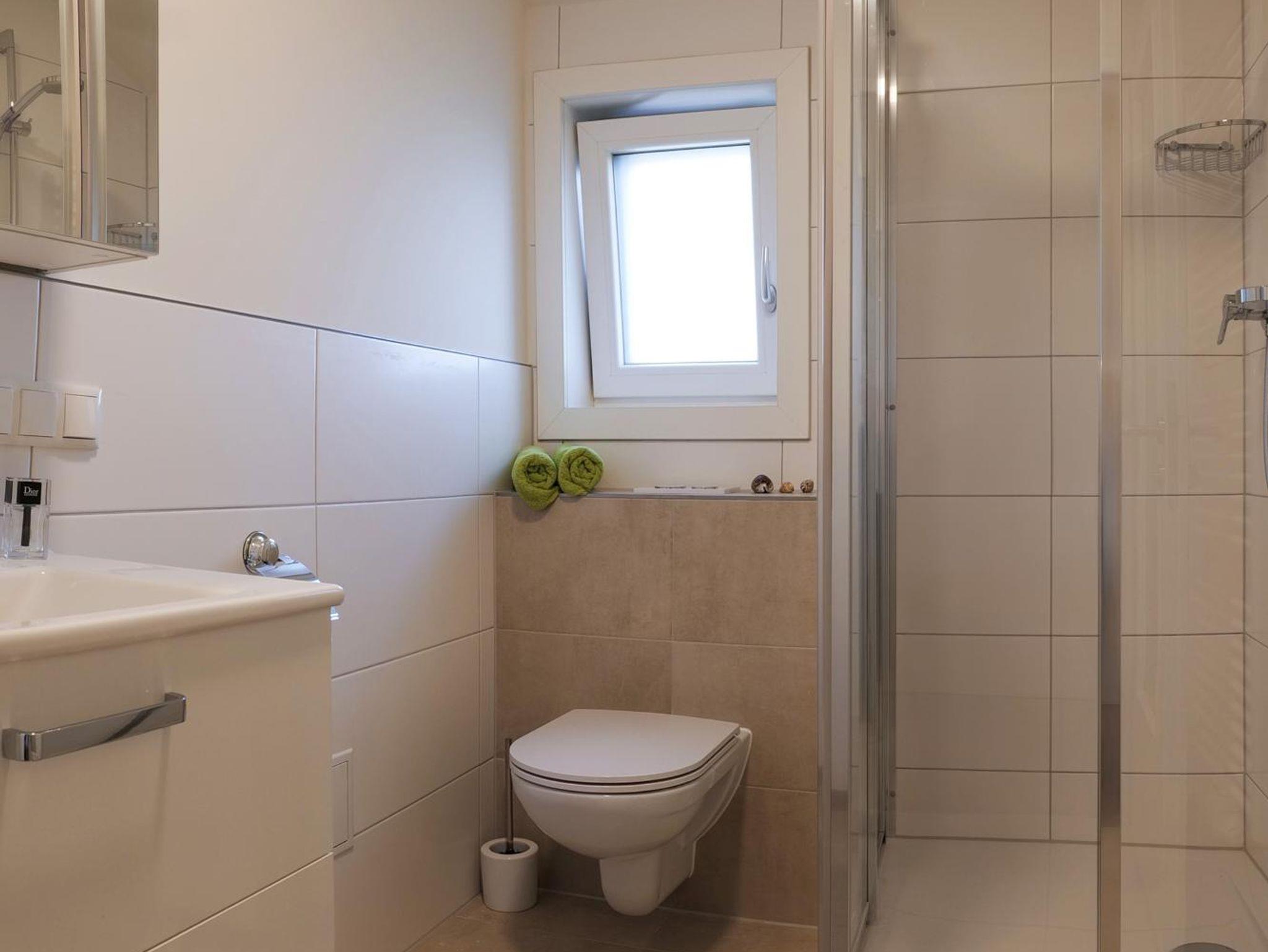 Das Badezimmer mit Dusche und WC ist als separater Raum vom Wohnbereich abgegrenzt.