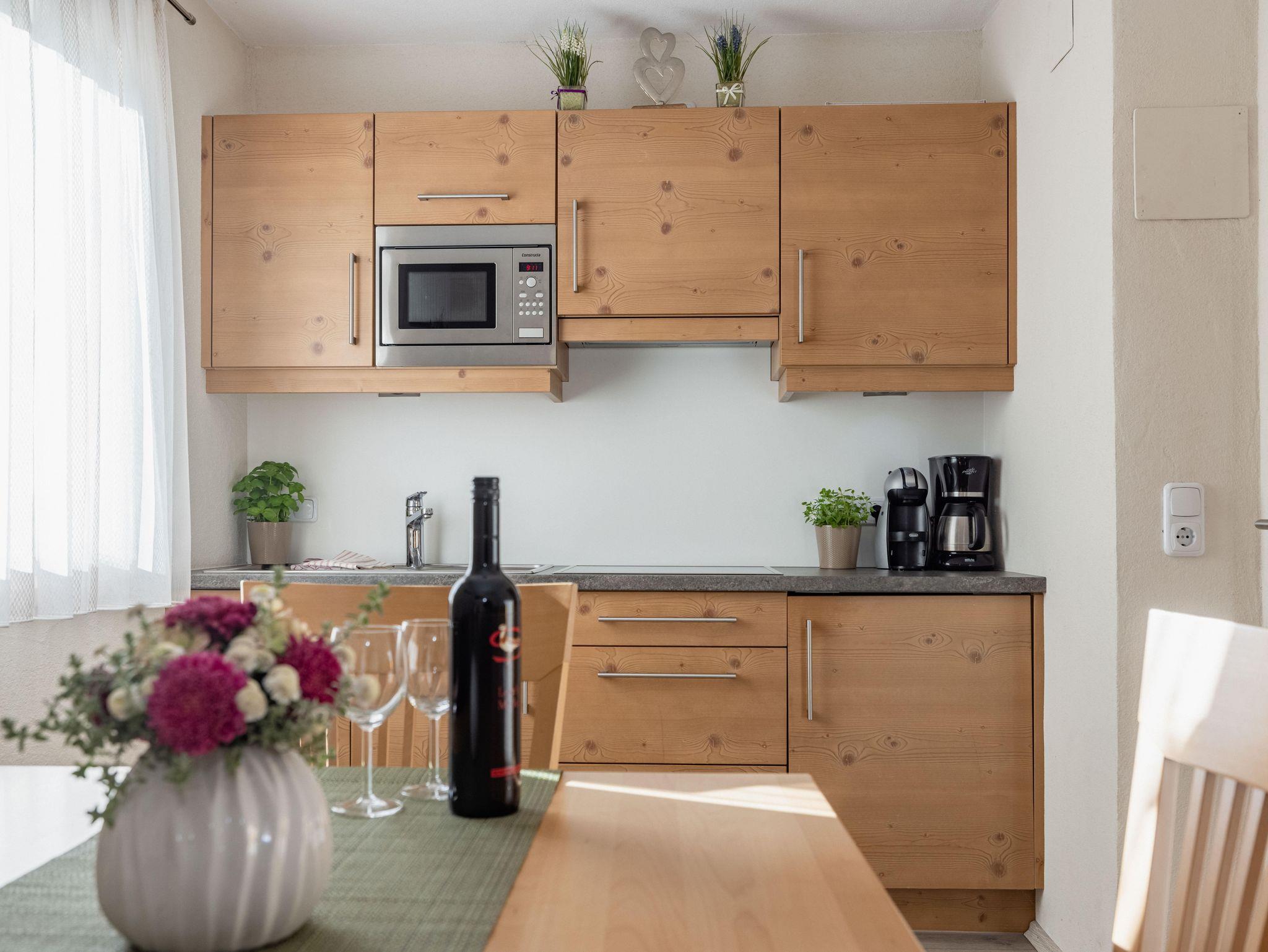 Ferienwohnung mit 2 Schlafzimmern und 2 Badezimmer, Möglichkeit mit Verbindungstür zu einem 3. Schlafzimmer, Balkon, voll ausgestattete Küche mit Sitzecke für 6 Personen, Geschirrspüler, Mikrowelle, Garderobe