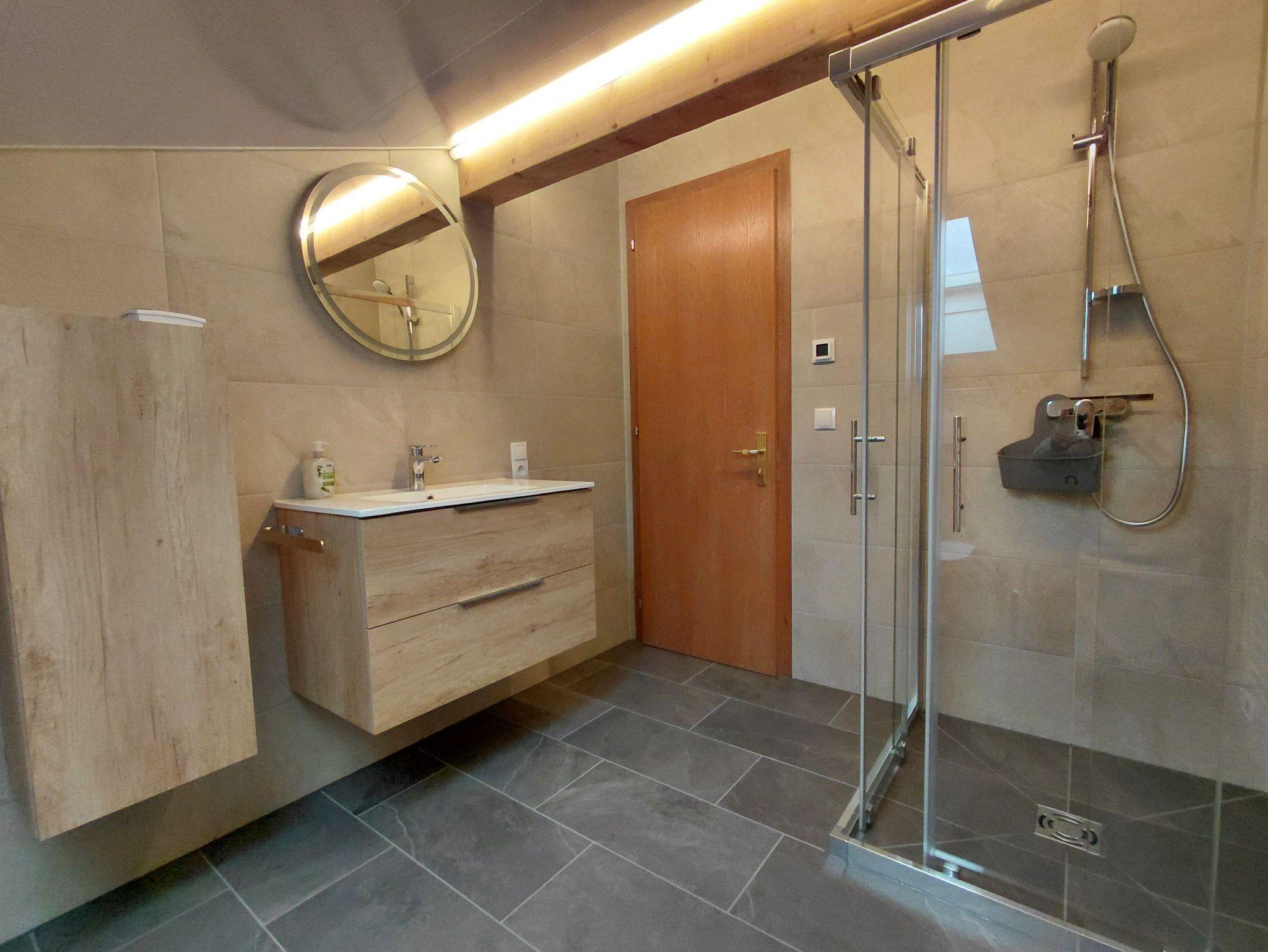 Die beide Badezimmer verfügen über eine Dusche, Waschbecke und WC.