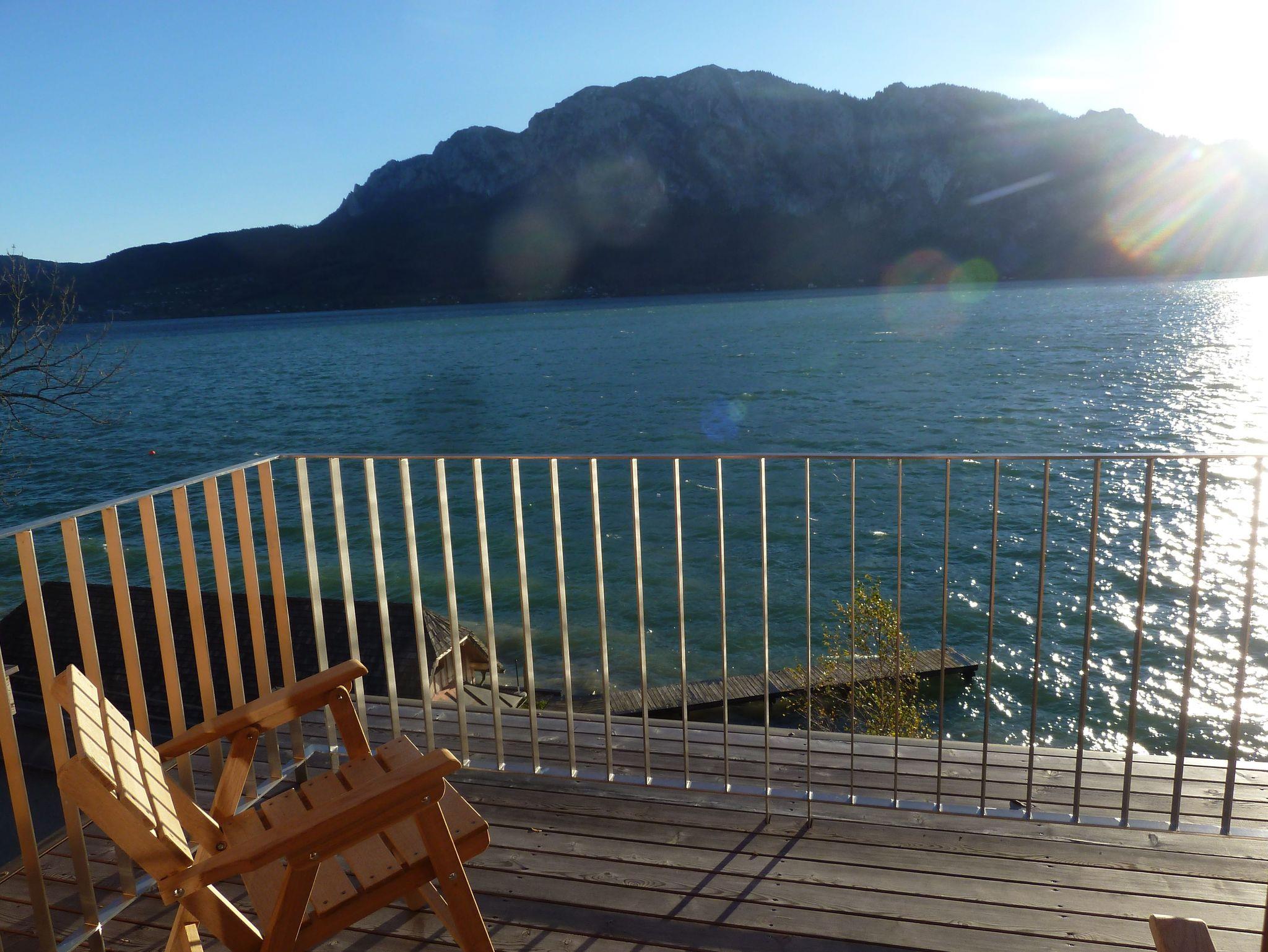 Unser Haus liegt 1,5 km vom Zentrum in Unterach entfernt an der Uferstraße. Unser eigener Badeplatz ist direkt gegenüber dem Haus, Man muss nur die Straße überqueren und schon taucht man in das glasklare Wasser des Attersees ein.