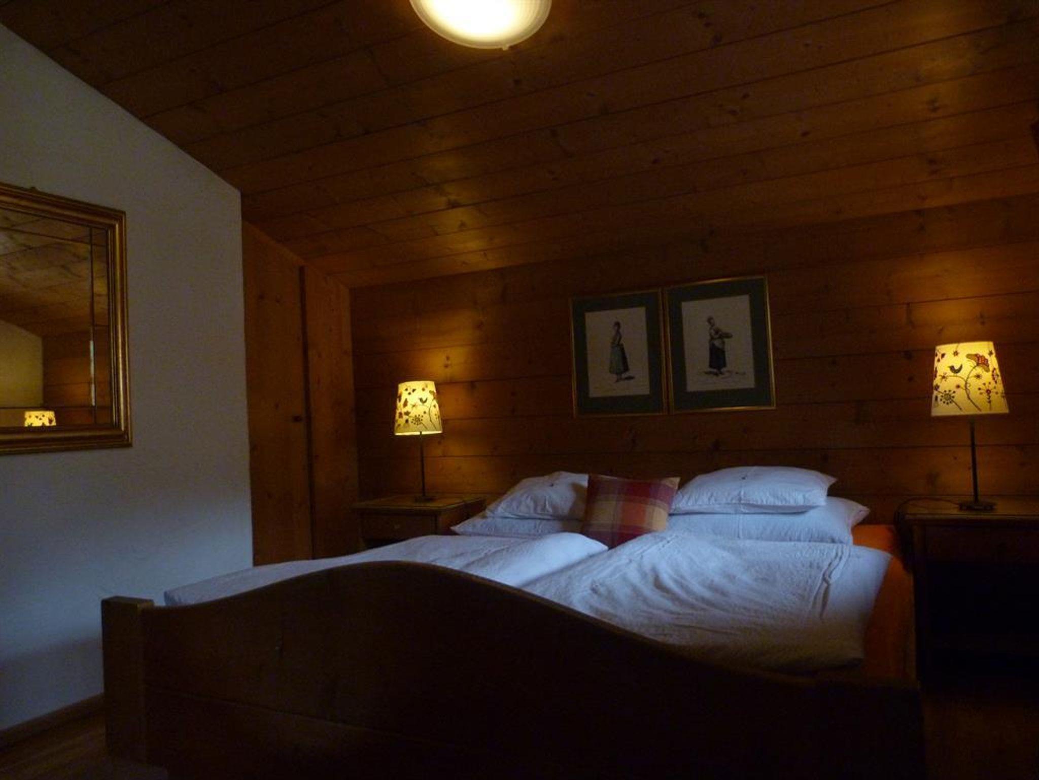 Im 1. Stockwerk, Größe ca. 48m2, für max. 4 Personen. Sehr ruhig, westseitig gelegen, Küchenzeile im Wohnraum; komplett ausgestattet mit Geschirr, Kaffeemaschine und Wasserkocher. Badezimmer mit Du/WC, Schlafzimmer mit Doppelbett, Wohnzimmer mit gemütlicher Eßecke und Doppelbett zum Ausziehen. Parkettböden mit Teppichen belegt. Türgegensprechanlage mit Elektroöffner - Telefon - Kabel-TV - Bettwäsche - pro Person eine Garnitur Toilettwäsche mit wöchentlichem Wechsel.