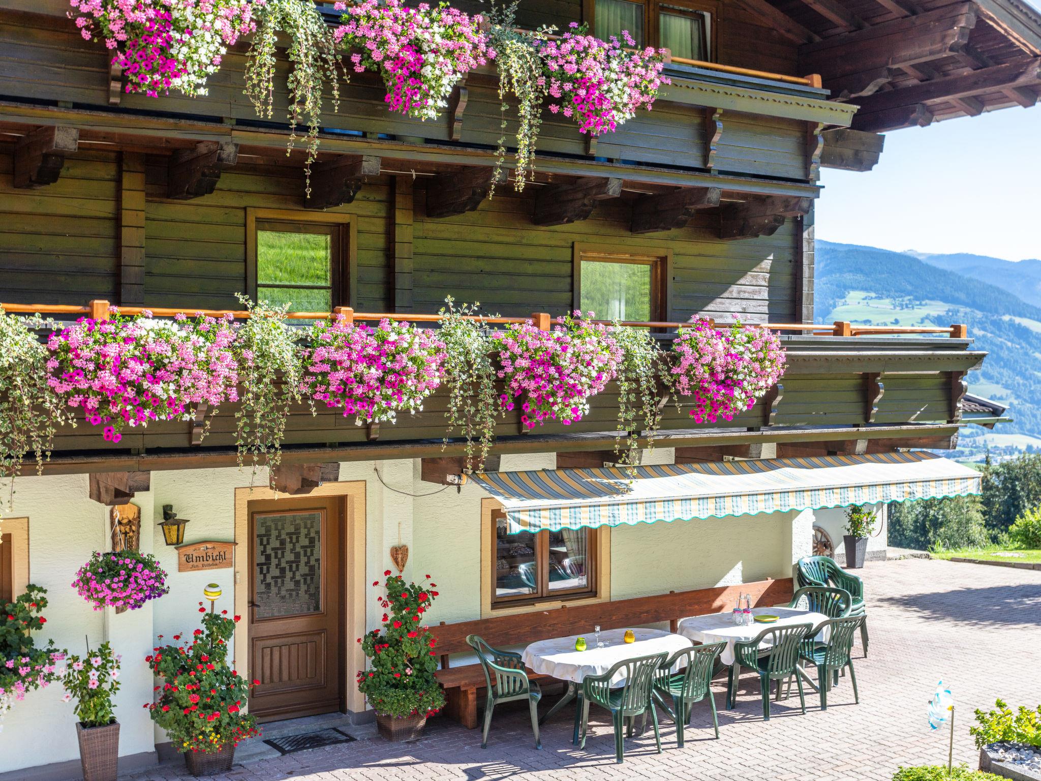 "Umbichl", 11-room farmhouse 350 m2 on 3 levels. Beautiful and cosy furnishings: living/dining room with dining nook and satellite TV. Kitchen (oven, dishwasher, 4 ceramic glass hob hotplates, toaster, kettle, microwave, freezer, electric coffee machine) with dining nook, satellite TV and wood-burning stove. Exit to the terrace. Shower, sep. WC. Upper floor: 1 room with 1 sofabed, 1 double bed and hand-basin. 1 room with 1 x 2 bunk beds, 1 double bed and hand-basin. 1 room with 1 bed and 1 double bed. 1 double bedroom. Shower, sep. WC. 2nd upper floor: 1 room with 1 french bed and hand-basin. Exit to the balcony. 1 room with 1 sofabed, 1 double bed and hand-basin. Exit to the balcony. 2 double bedrooms, each room with hand-basin. Exit to the balcony. 1 room with 1 sofabed, 1 double bed and hand-basin. Exit to the balcony. Shower, sep. WC. Wooden floors. The living room is a farmhouse lounge. 2 balconies, large terrace. Terrace furniture, barbecue, box-room. Panoramic view. Facilities: washing machine (extra). Dryer (extra), baby cot. Internet (WiFi). Parking. Please note: non-smoking house. Maximum 1 pet/ dog allowed. Dogs are not allowed in the bedrooms. When there are less than the maximum number of guests staying at the property, not all of the bedrooms will be available for use. 50624-000637-2020