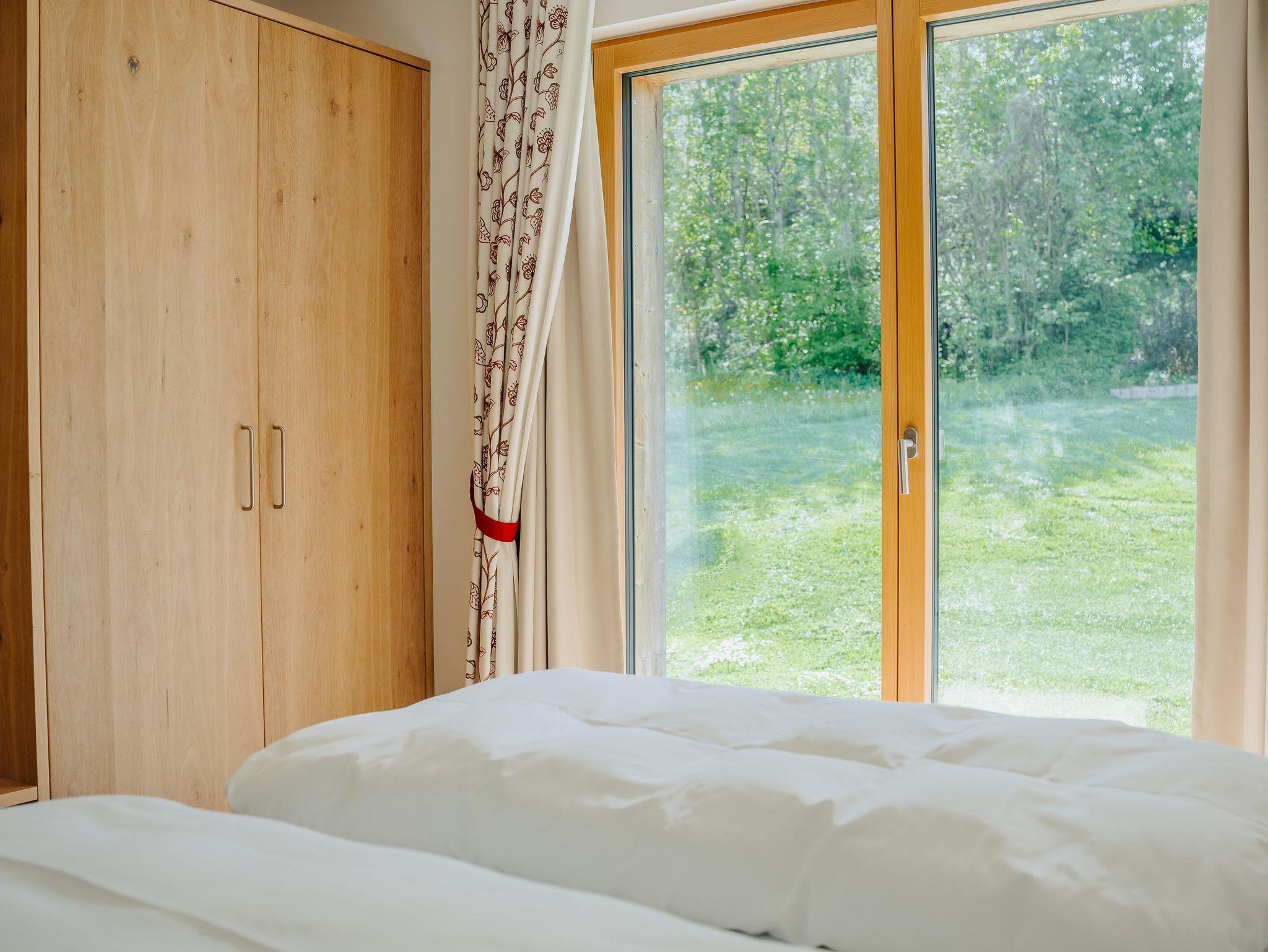 Eine optimale Raumeinteilung mit ineinanderfließenden Räumen und zwei Bädern ermöglichen entspanntes Wohnen für 4-6 Personen. Gegen Westen gelegene Schlafzimmer garantieren Ihnen einen ruhigen, gesunden Schlaf. Genügend Platz zum Entspannen und Verweilen bietet auch die Gartenterrasse mit 41 m². Hier sitzen Sie in erster Reihe zur Bergkulisse.