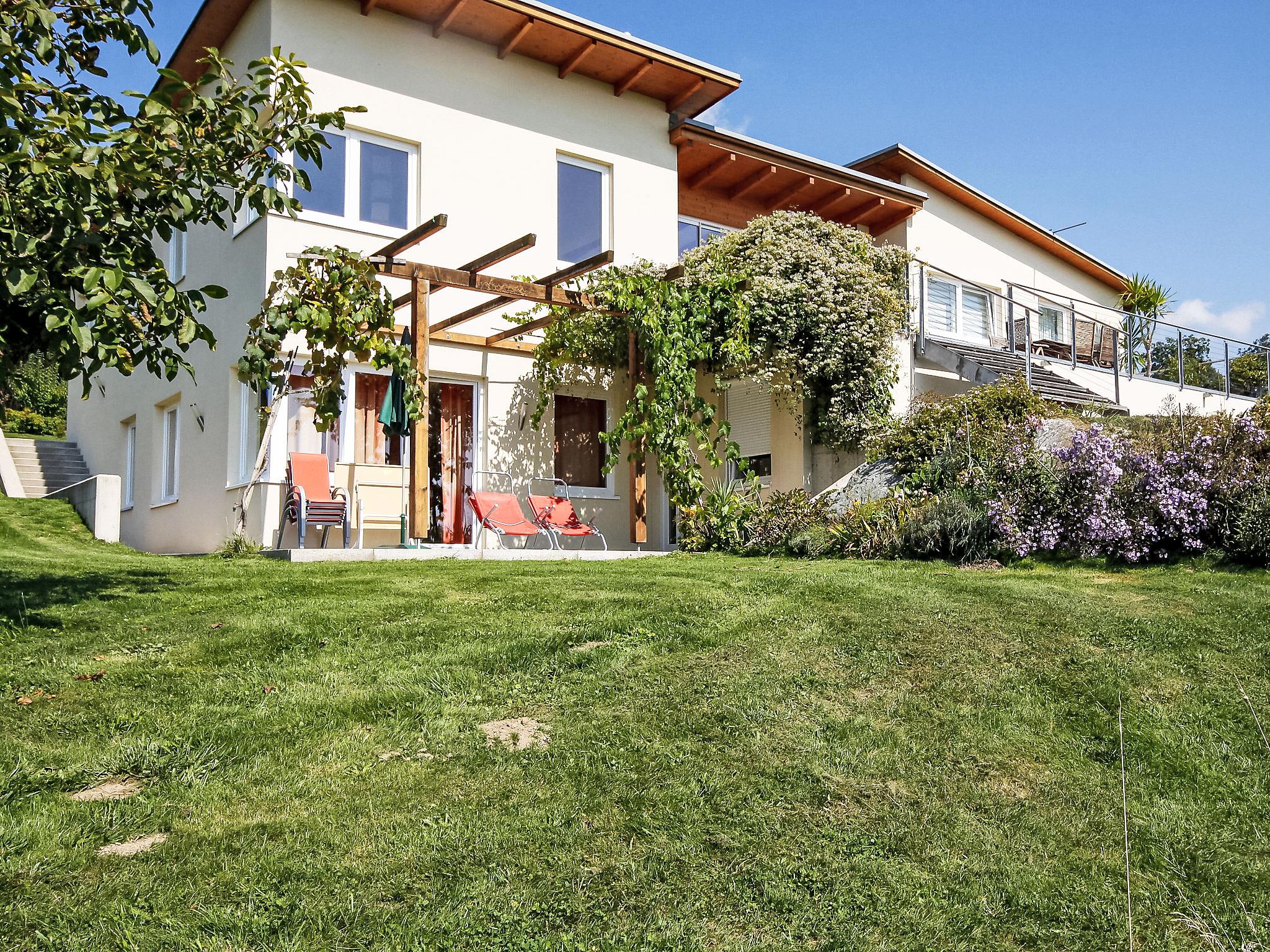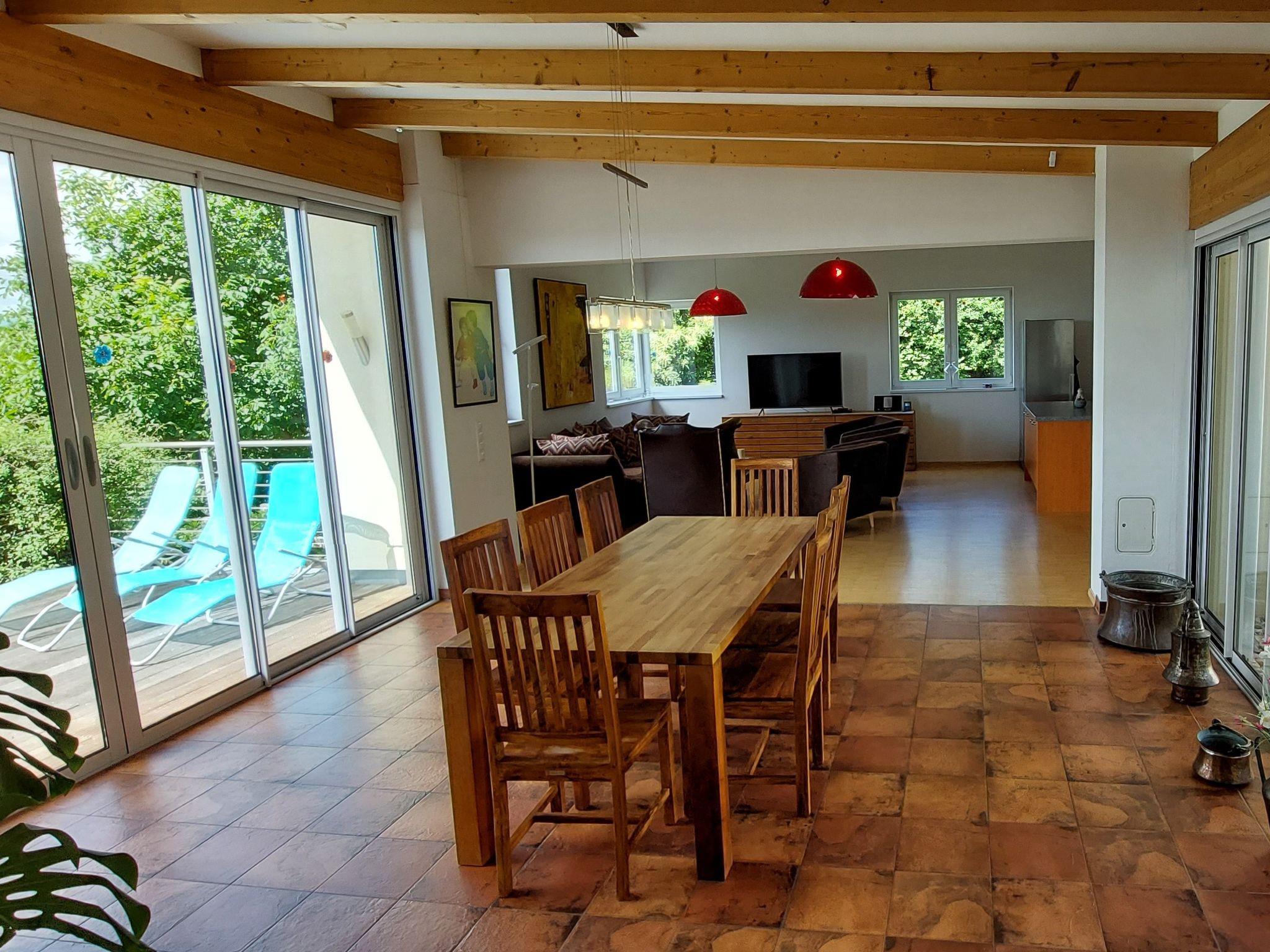7-room villa 250 m2 on 2 levels. Spacious, comfortable and tasteful furnishings: entrance hall. Large living room 70 m2 with dining table, satellite TV, radio and DVD. Exit to the terrace. 2 double bedrooms. 1 room with 2 beds. Open kitchen (oven, dishwasher, 4 ceramic glass hob hotplates, microwave, freezer, electric coffee machine). Bathroom, shower/WC, 2 sep. WC's. On the lower ground floor: entrance hall. Living room 35 m2 with dining table, satellite TV, radio and DVD. Exit to the terrace. 1 double bedroom with bath/WC. 1 room with 2 beds. Open kitchen (oven, dishwasher, 4 ceramic glass hob hotplates, freezer, electric coffee machine). Shower, sep. WC. 2 terraces, south facing position. Terrace furniture, deck chairs, box-room. Marvellous view of the mountains and the countryside. Facilities: washing machine. Internet (WiFi, free). Parking (roofed, 2 cars) at the house. Please note: non-smoking house. Smoke alarm. Main entrance on the first floor. Nespresso capsule machine available.