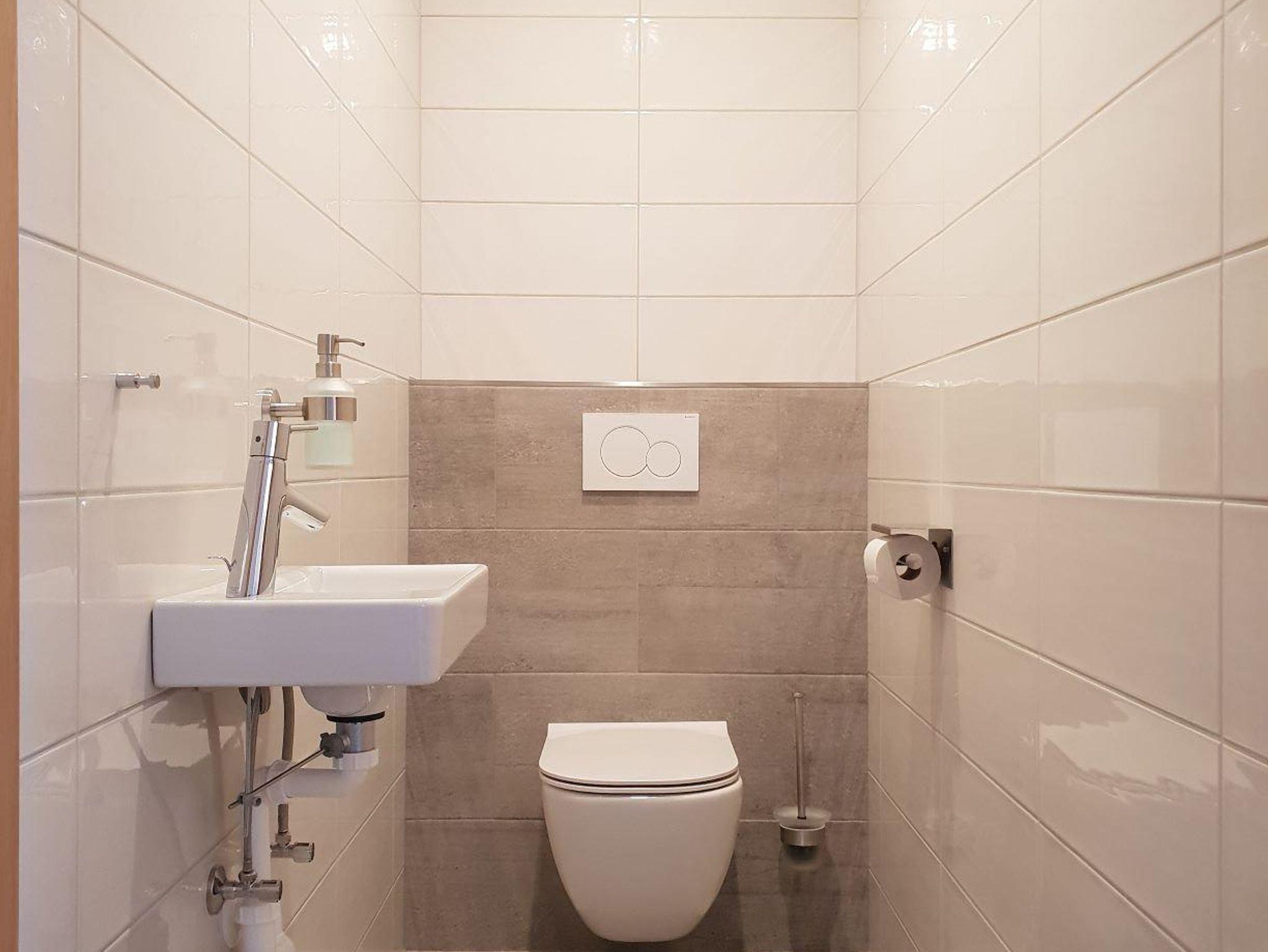 Der Wohnbereich ist mit einem (Schlaf-)Sofa ausgestattet und geht nahtlos in die moderne Küche sowie den Essbereich über. Das Badezimmer verfügt über eine Regendusche und eine Toilette, zusätzlich gibt es eine separate Gästetoilette.