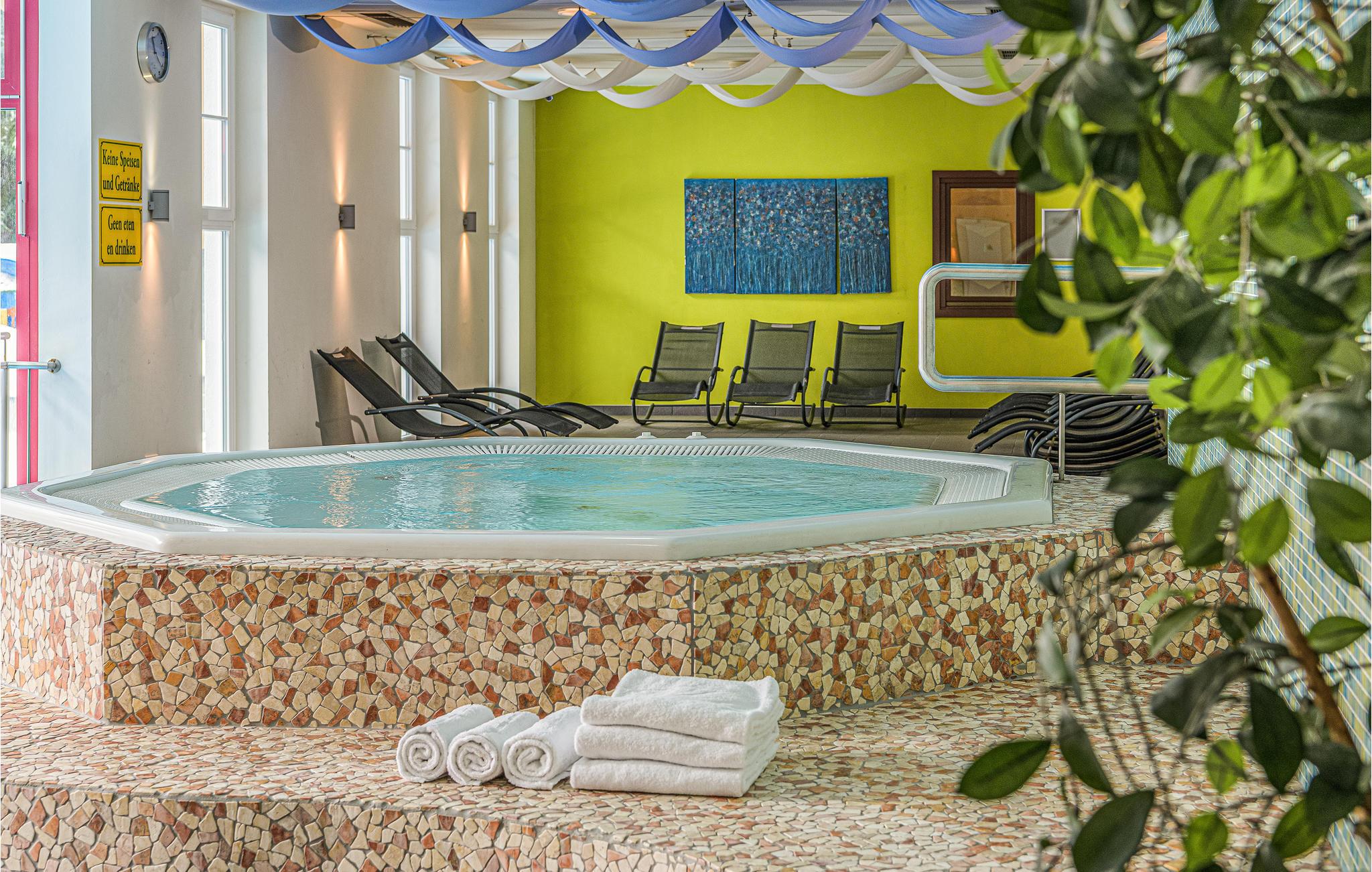 Etter fotturer og aktiviteter i naturen kan du benytte deg av feriestedets velværeprogram på ettermiddagene. Et utendørsbasseng og flere innendørs boblebad innbyr til en dukkert eller svømmetur. Det er også en felles badstue. Det er også tenkt på de minste. Vakre lekeområder vil gi barna dine mange timer med glede og holde dem utmattet.