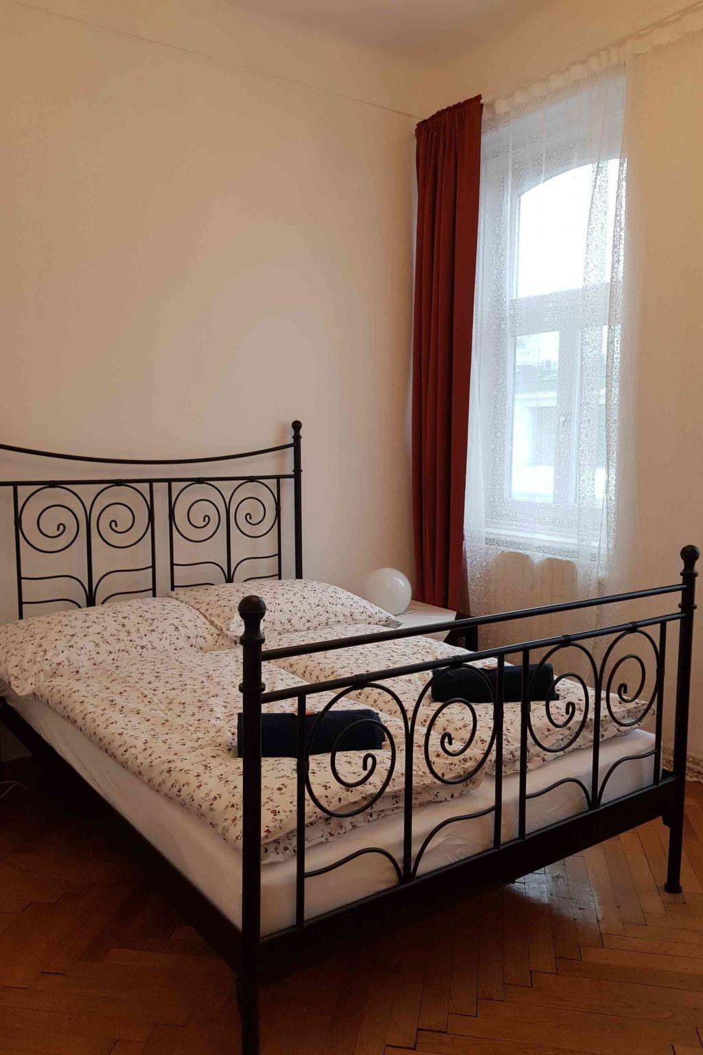 The accommodation has a fully equipped kitchen, 4 bedrooms, one of which has a bunk bed and a view of the quiet inner courtyard. The living room has a dining table and a couch that can also serve as a sofa bed for two people. As is customary in the old Viennese town houses, there is a bathroom with washbasin and bathtub. The WC is located in a separate room.