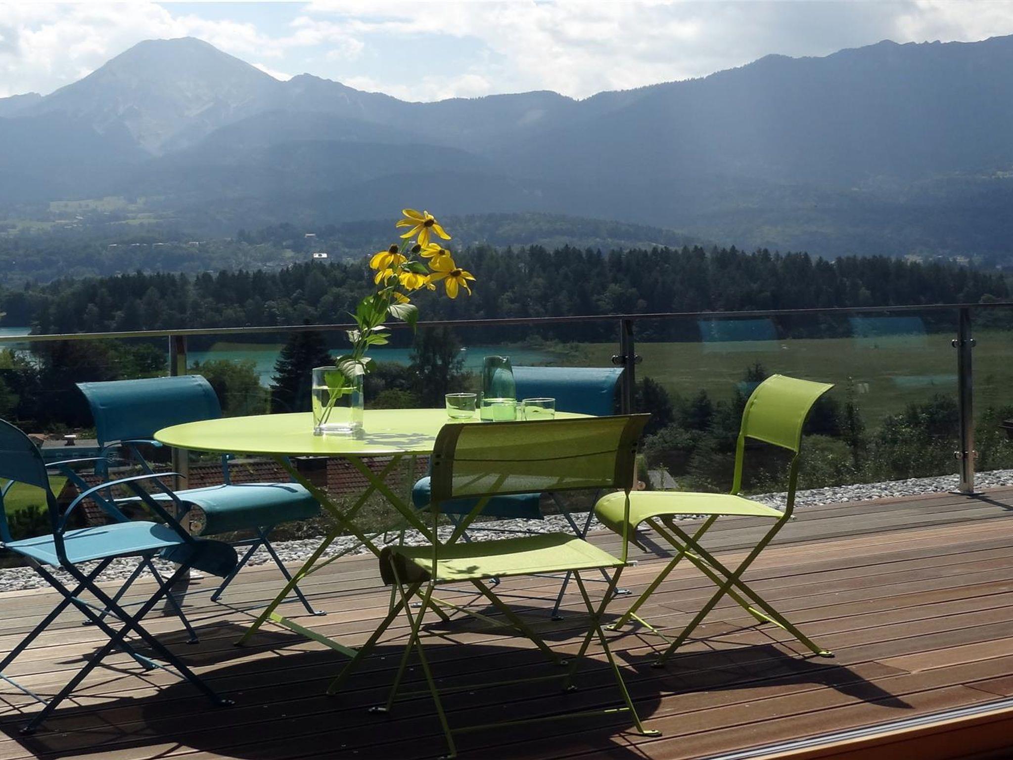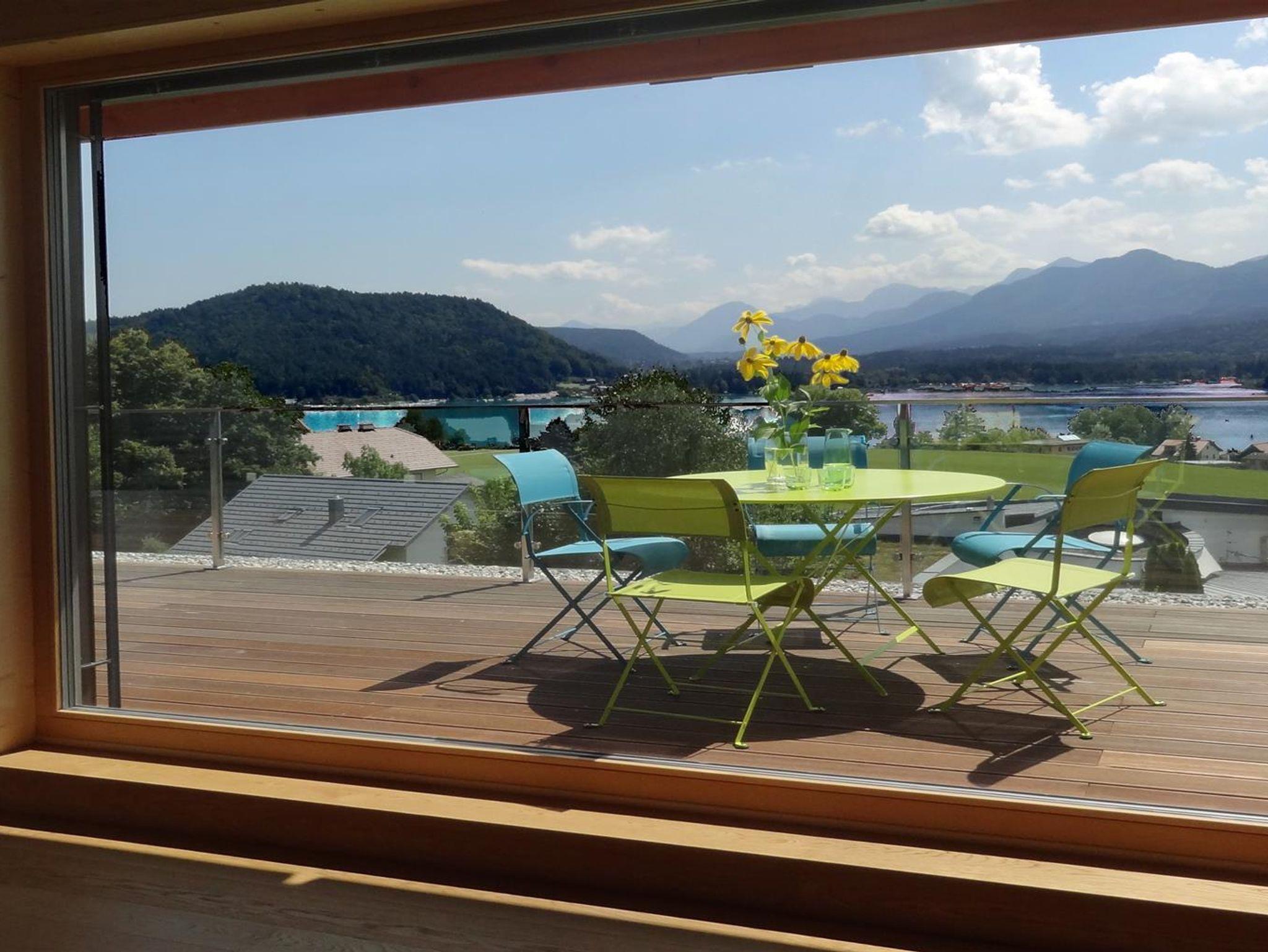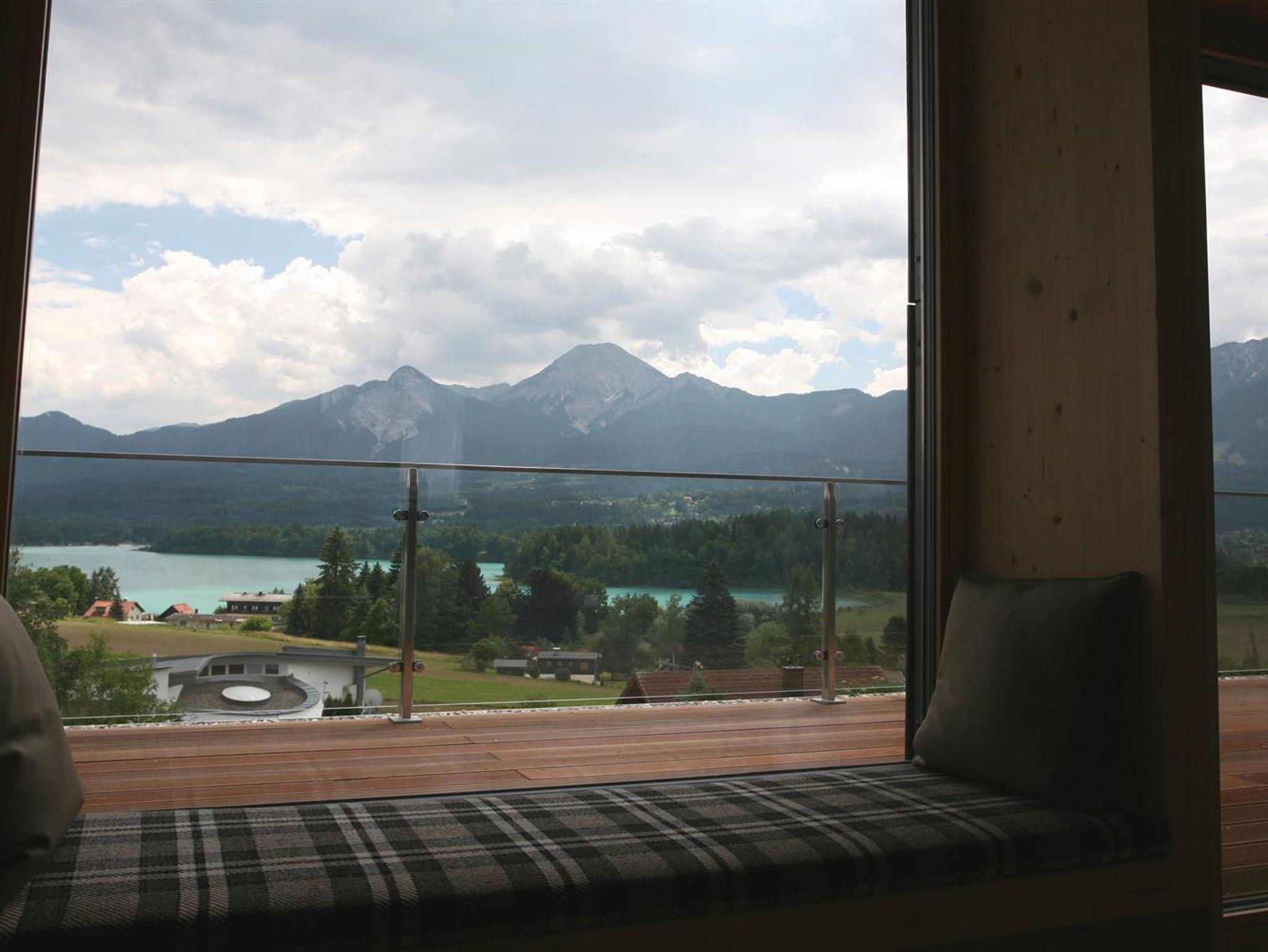 Die überdachten Balkone sind mit Nurglasgeländern ausgestattet, damit der Blick auf den Faaker See möglichst frei bleibt.