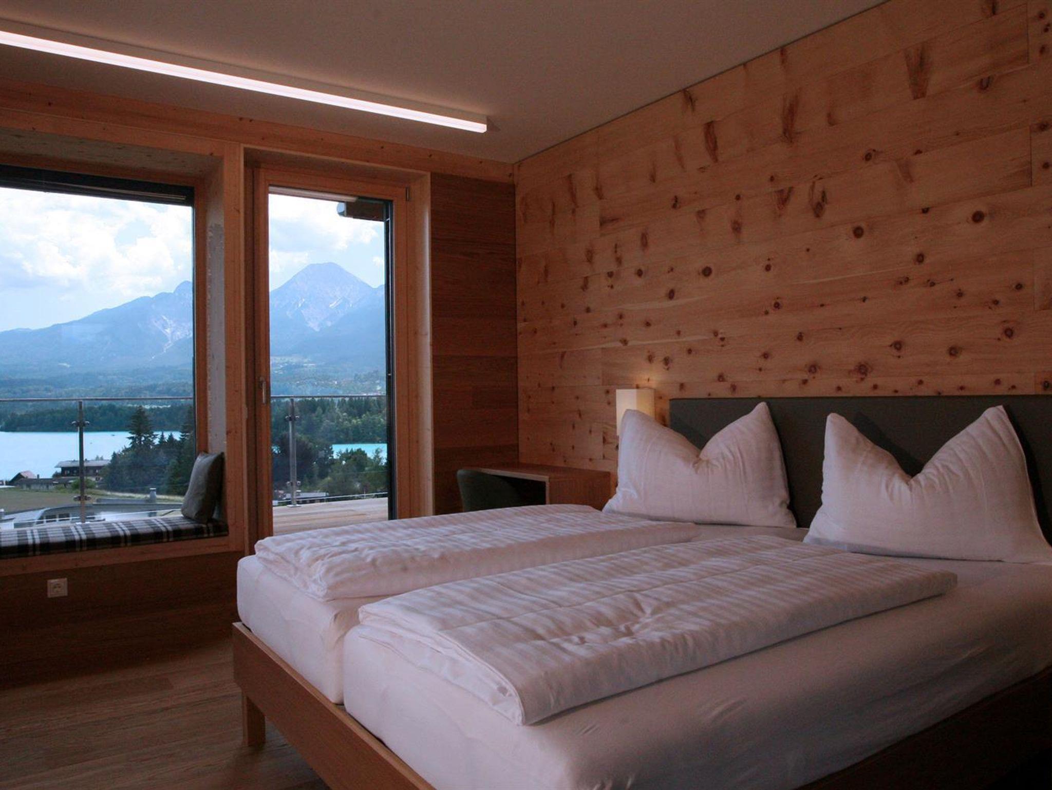 Das Apart Faaker See liegt in Drobollach am Faaker See und bietet freien Blick auf den Faaker See und die dahinter liegende Bergkette der Karawanken. Beeindruckend erhebt sich der Mittagskogel unmittelbar hinter dem türkisfarbenen See.