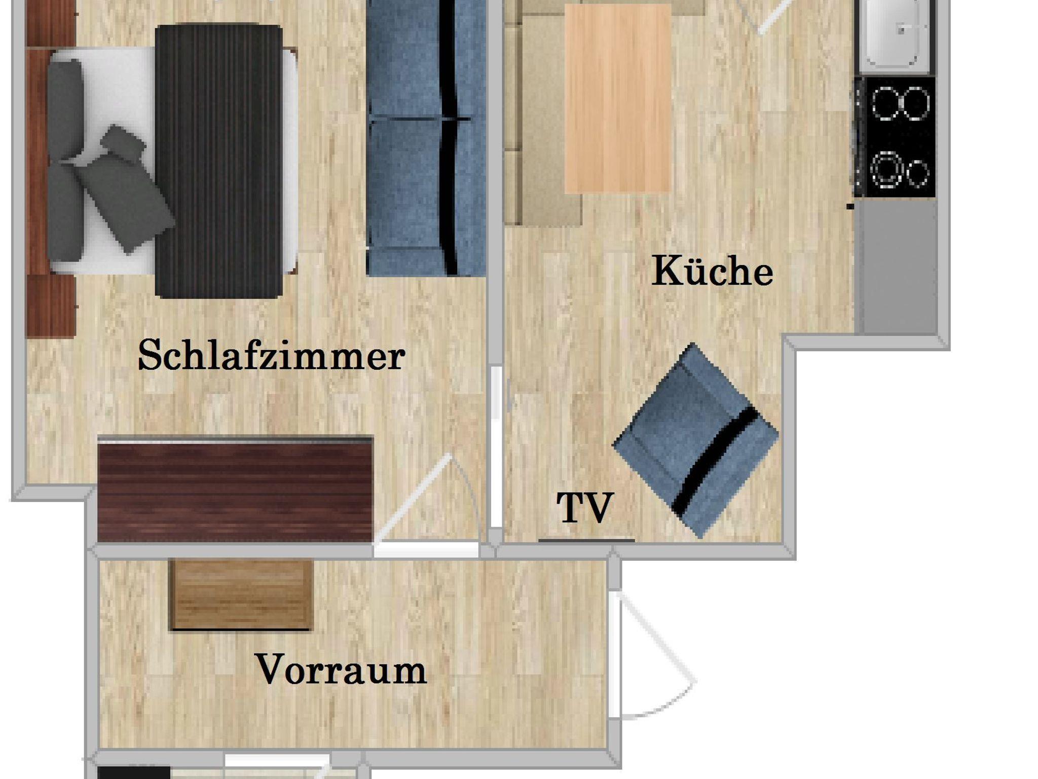 Ferienwohnung 40 m², geeignet für maximal 2 Erwachsene, 2 Kinder oder 3 Erwachsene.