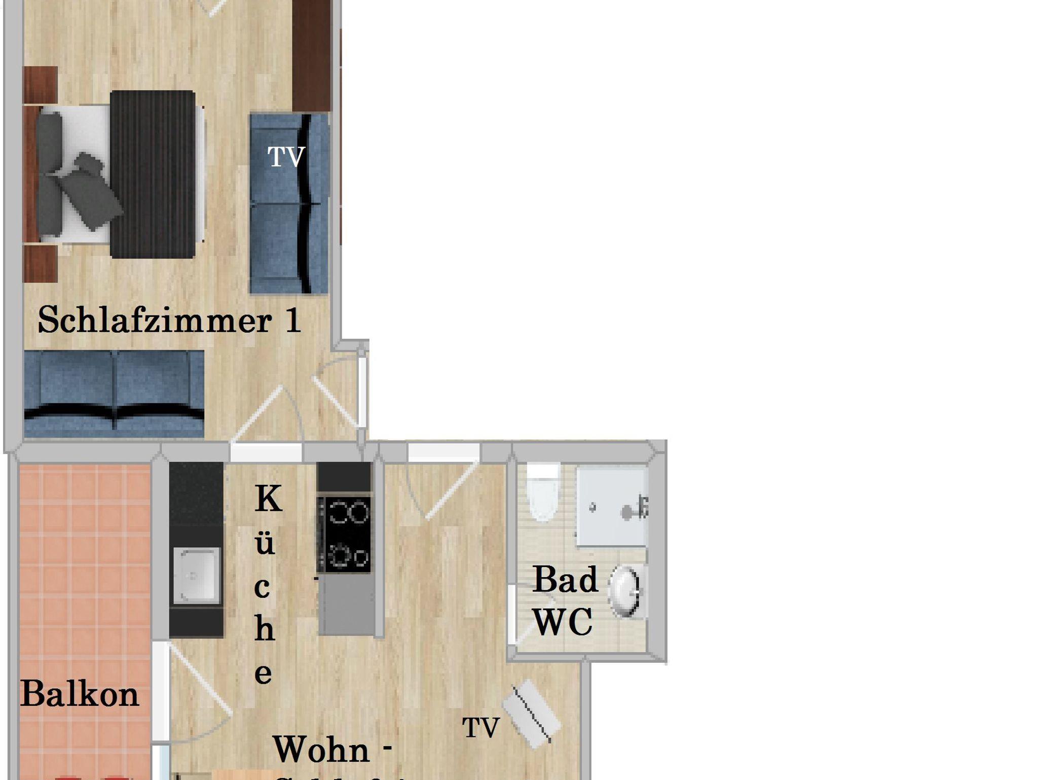 Alle Räume verfügen über einen eigenen Ost-Süd und Süd Balkon, mit Gartenmöbel und SAT-Flach-TV.
