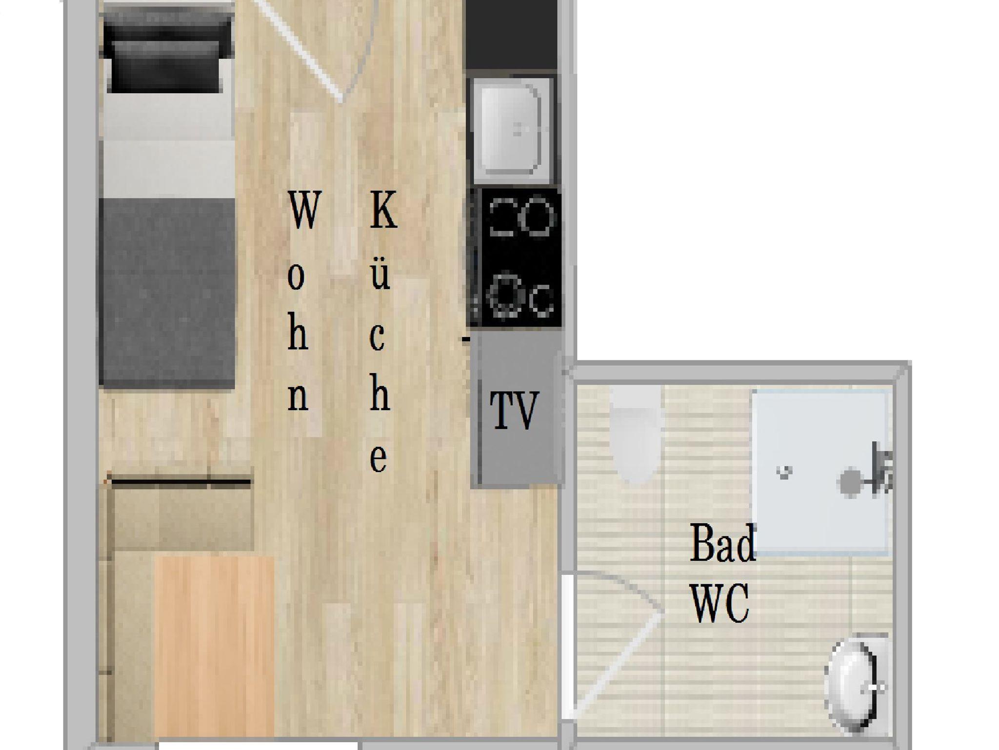 Wahlweise befindet sich im Wohnbereich eine Doppelcouch, die auch zum Schlafen für 1 Person ( 0,85x2m) oder 2 Personen ( 1,60x2m) geeignet ist.