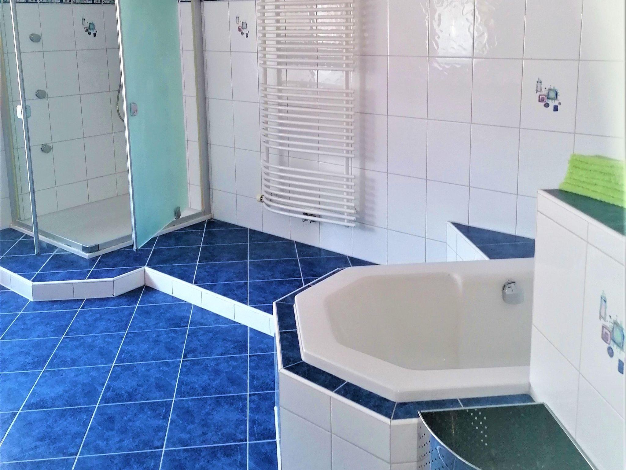Im ersten Obergeschoss befinden sich ein WC ,ein großes, luxuriöses Bad , sowie 3 Doppelzimmer