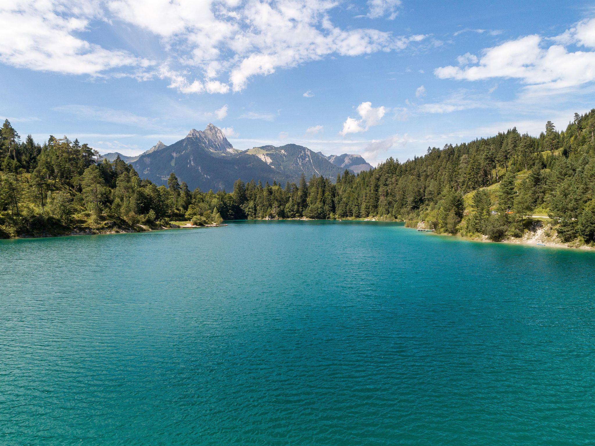 Blick auf die umliegenden Bergwelten der Lechtaler und Allgäuer Alpen.