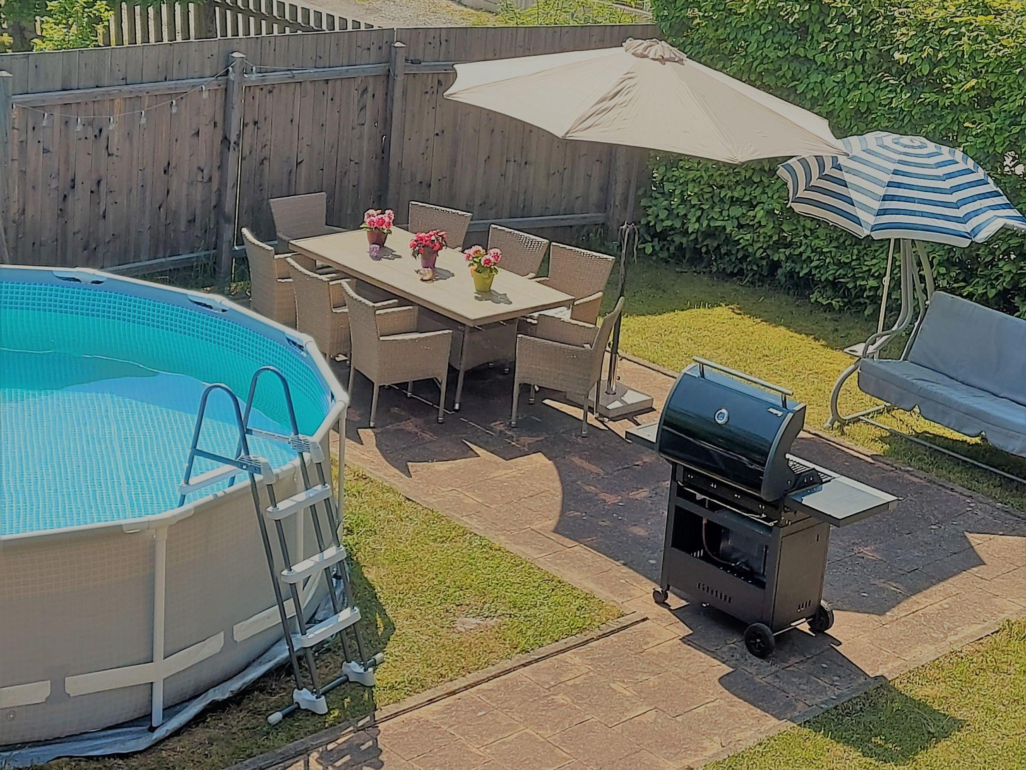 Das Haus verfügt über einen großen Garten mit Grillmöglichkeit und kleinem Schwimmbecken, welches in den Sommermonaten