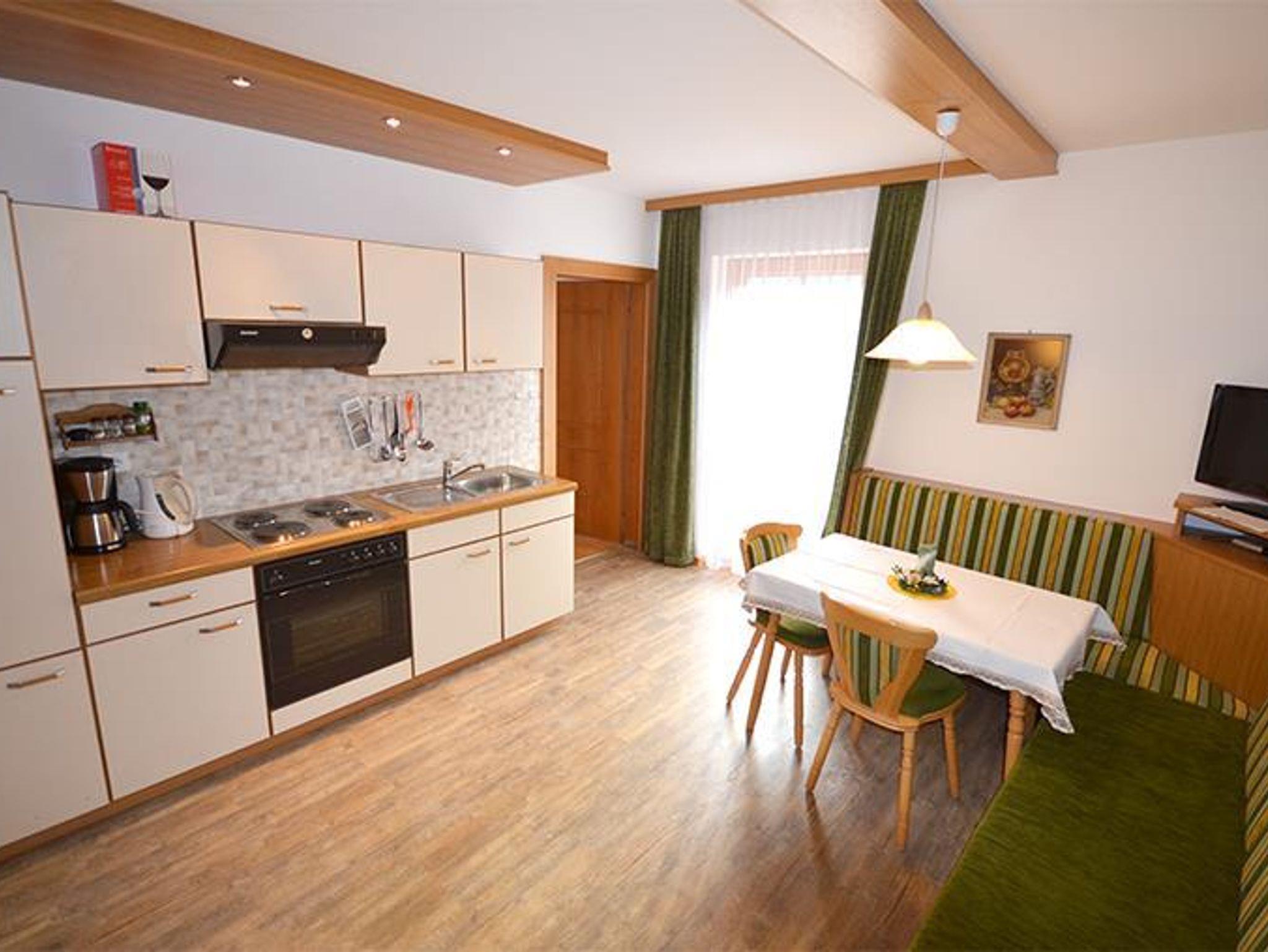 40m² Appartement im 1.Obergeschoss:1 Schlafzimmer (1,80x2m Bett) und Extrabett, kleines Badezimmer mit Dusche/WC, gut ausgestattete Wohnküche mit Sofa und gemütlicher Eckbank mit Esstisch. Flat-Screen, sonniger Südbalkon mit Bergpanorama