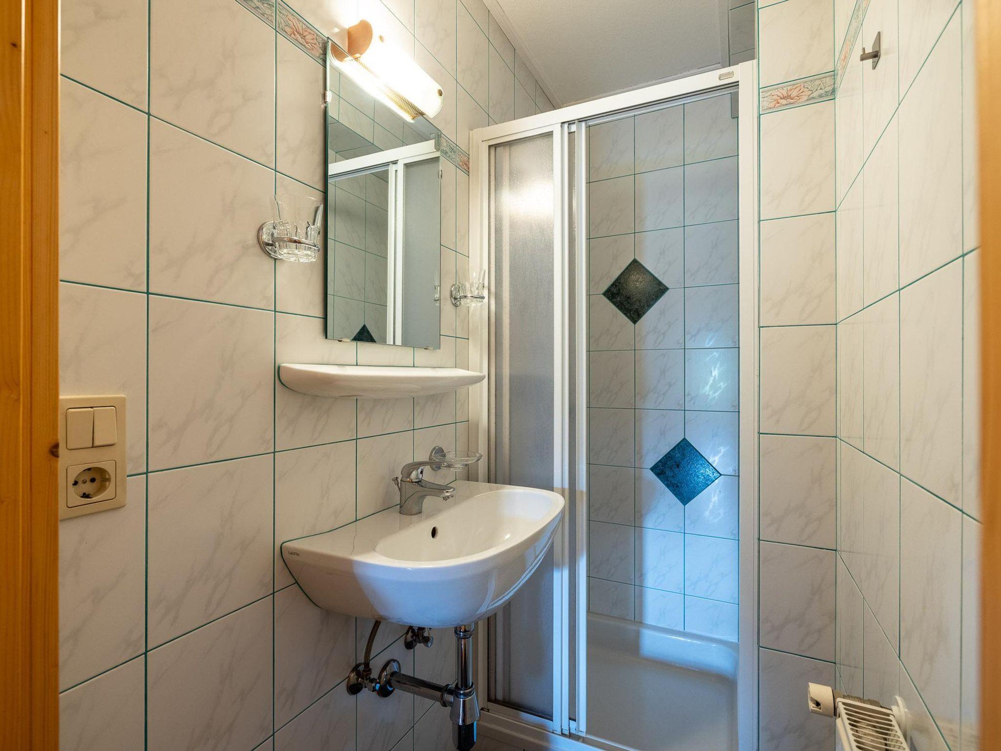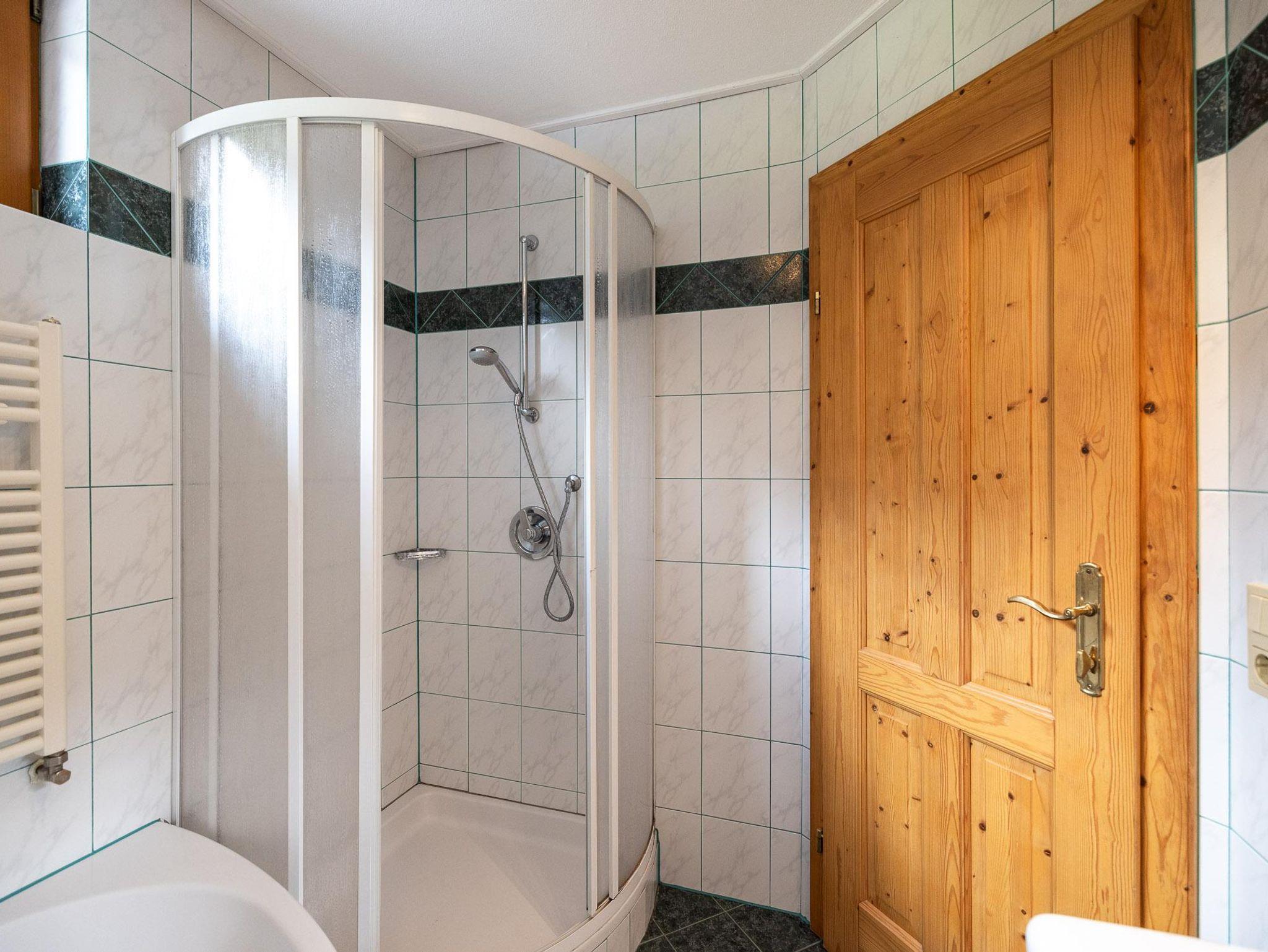 Dieses Appartement besteht aus drei Doppelzimmern, eines davon mit Dusche. Das Hauptbadezimmer ist zusätzlich mit einer Badewanne und einer Dusche ausgestattet, das WC ist separat.