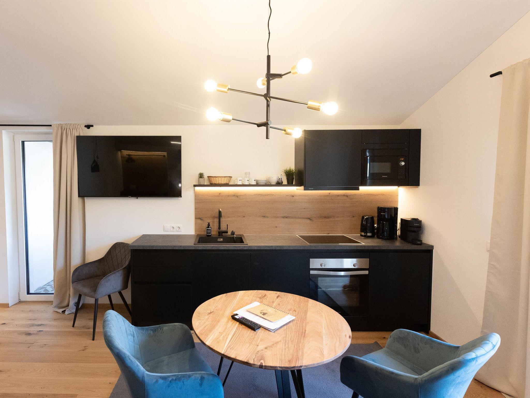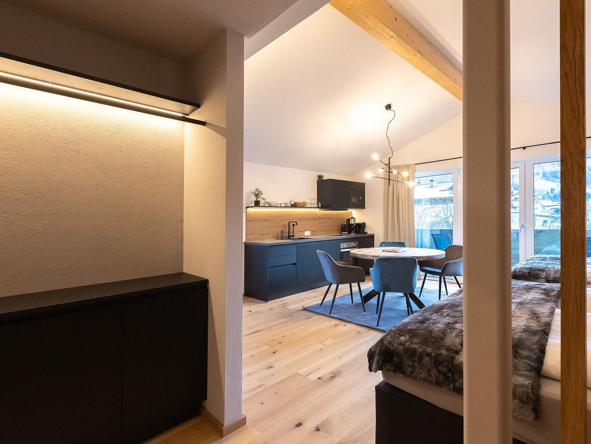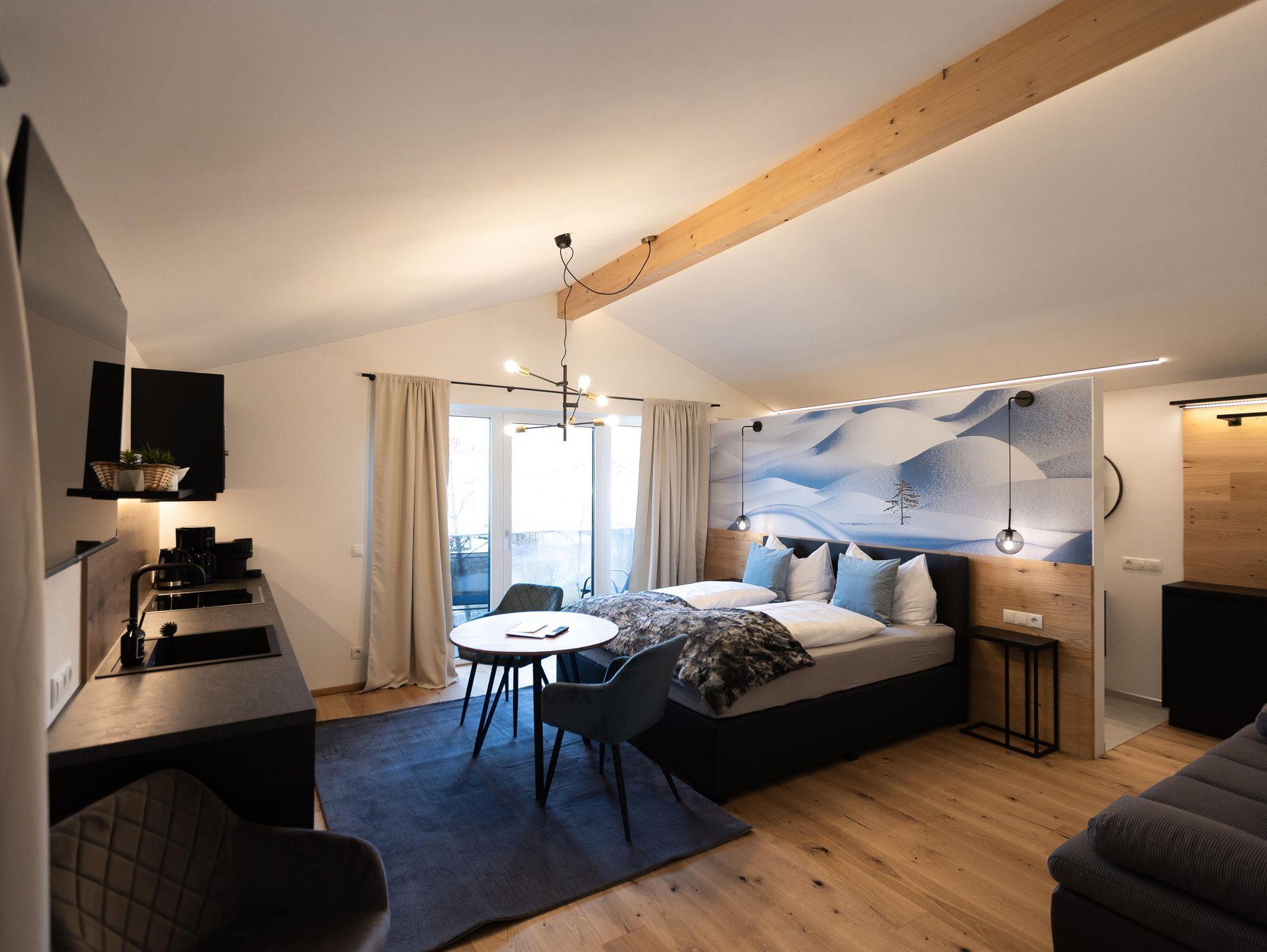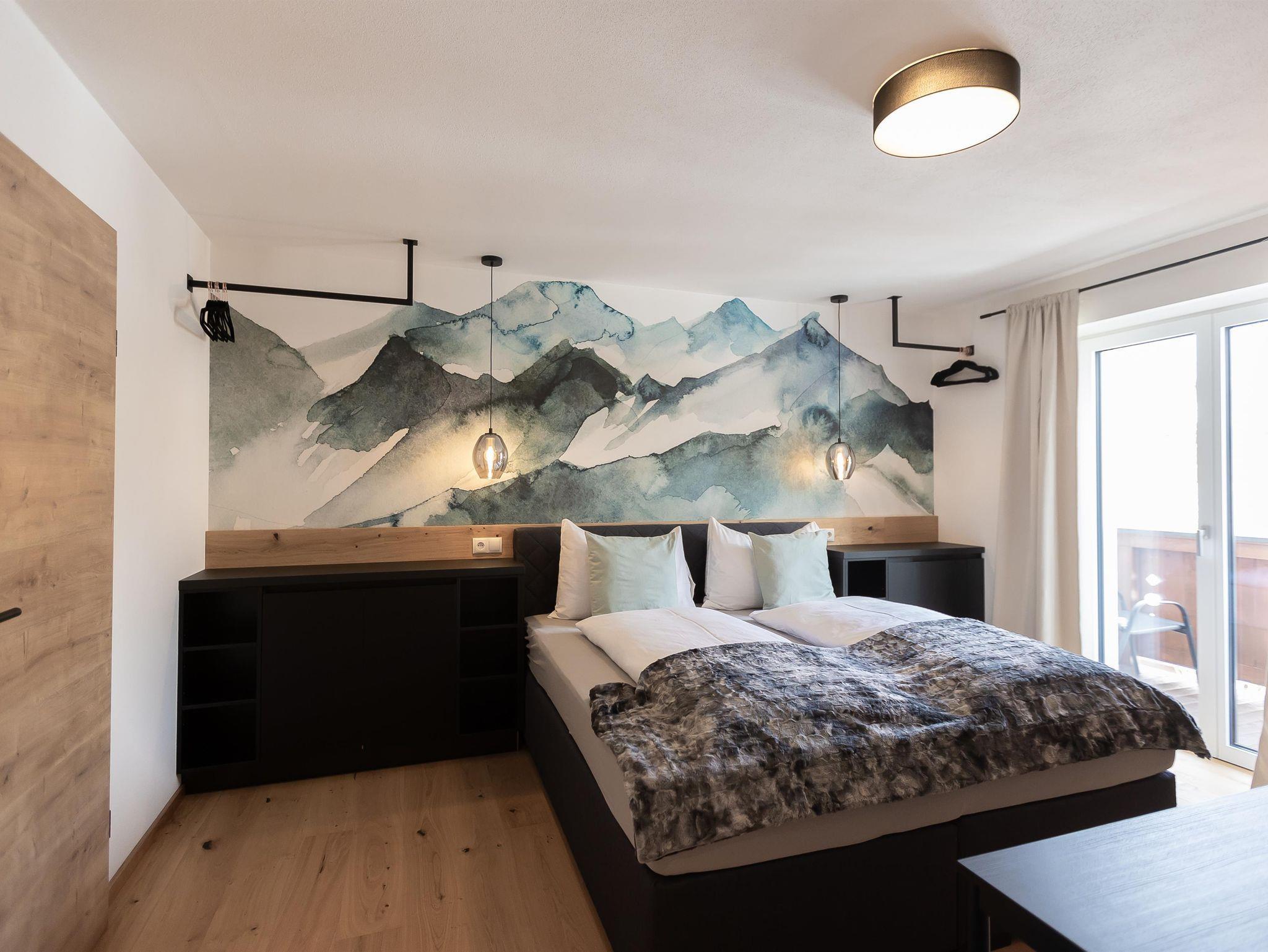 Unser Mountainy - Apartment mit Bergblick ist ideal für Familien und Freunde, verfügt über 2 komfortable Boxspringbetten, 1 Bad mit Regendusche, 1 separates WC, moderne Küchenzeile, großer Essbereich, Balkon mit herrlichem Ausblick, WIFI.