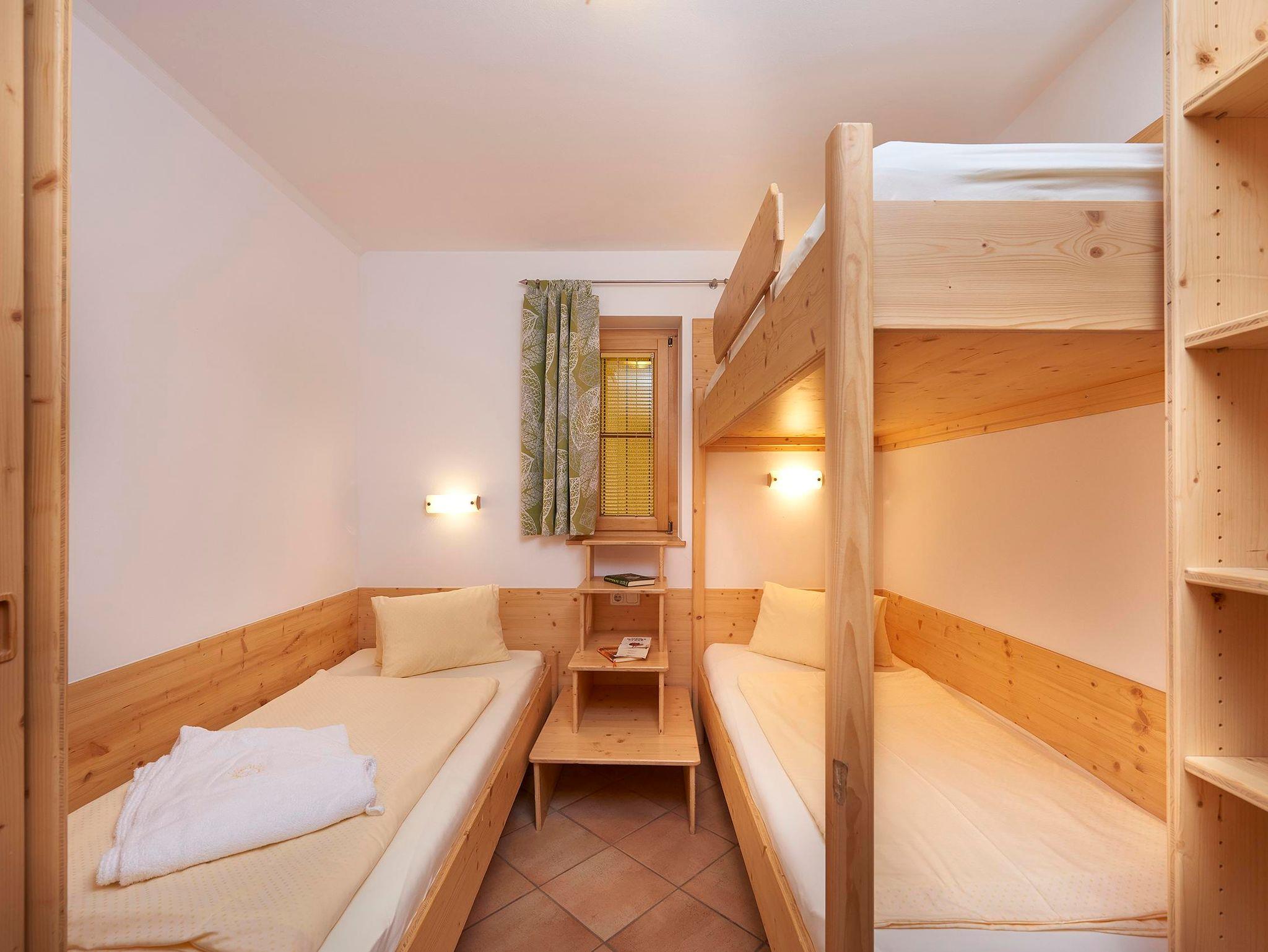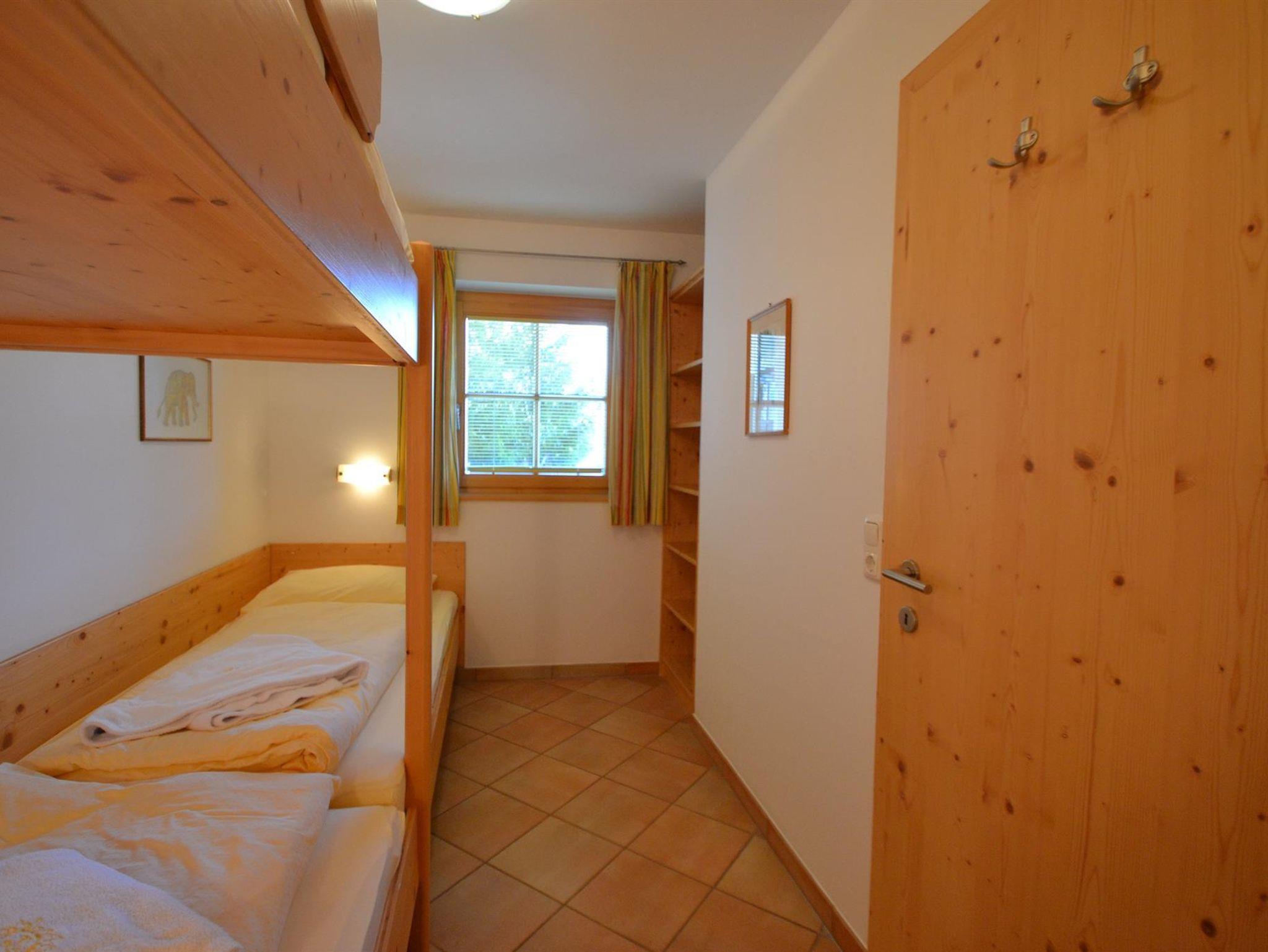 2 getrennte Schlafzimmer: 1 Zimmer mit 2 Einzelbettn und 1 Stockbett und 1 Zimmer mit Doppelbett