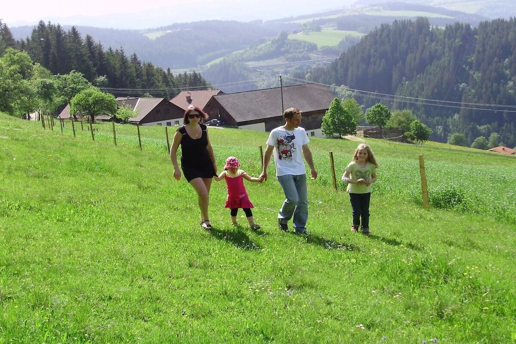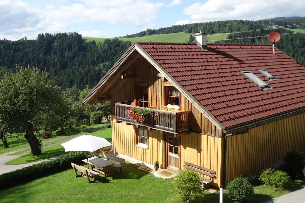 Hvis du ønsker avslapning og fred for hele familien – langt borte fra hverdagslivet, stress og støy – er Schmiedbauer Hütt"n det perfekte stedet for deg. Schmiedbauer Hütt"n, som ligger i et vakkert landskap, er et sted for de som setter pris på noe spesielt. Legg hverdagen bak deg i hyttas koselige rom. Slapp av og la sjelen din slappe av... "Sov bedre i en seng av sveitserfuru" Nyt ferien din på "Schmiedbauer Hütt"n" i de herlig velduftende og helsebringende soverommene i sveitserfuru...