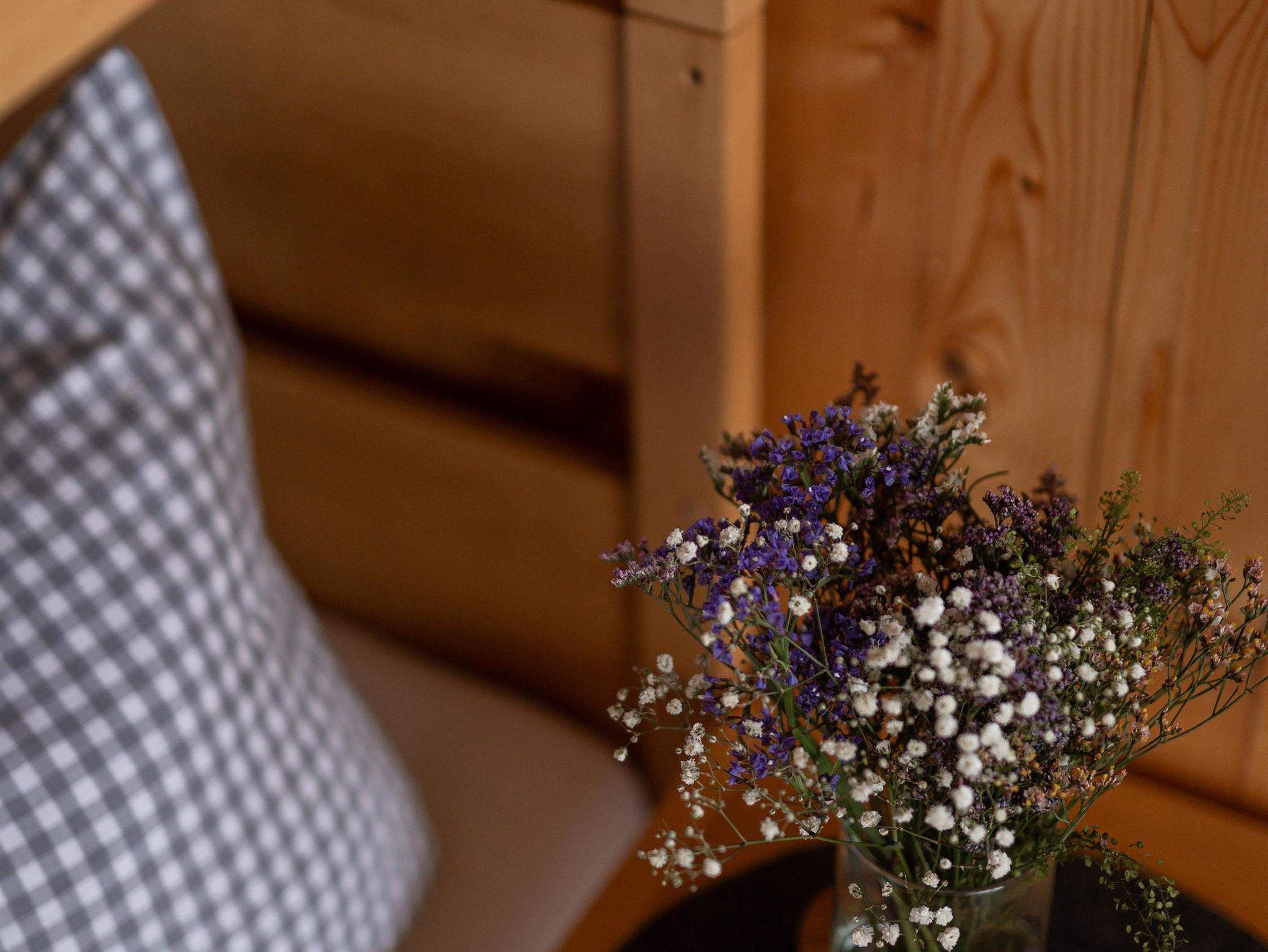 Der Boden aus Lärchenholz und die moderne, reduzierte Möblierung sind stimmig.