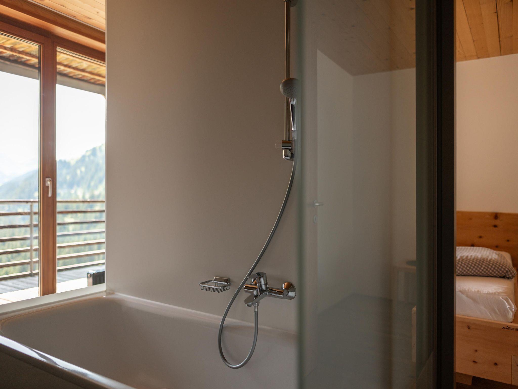 Das Appartement Madloch verfügt über zwei getrennte Schlafzimmer. Eines mit Doppelbett sowie eines mit Stockbett. Ebenso gibt es ein Schlafsofa im Wohnraum. Das Badezimmer ist mit Badewanne und WC ausgestattet.