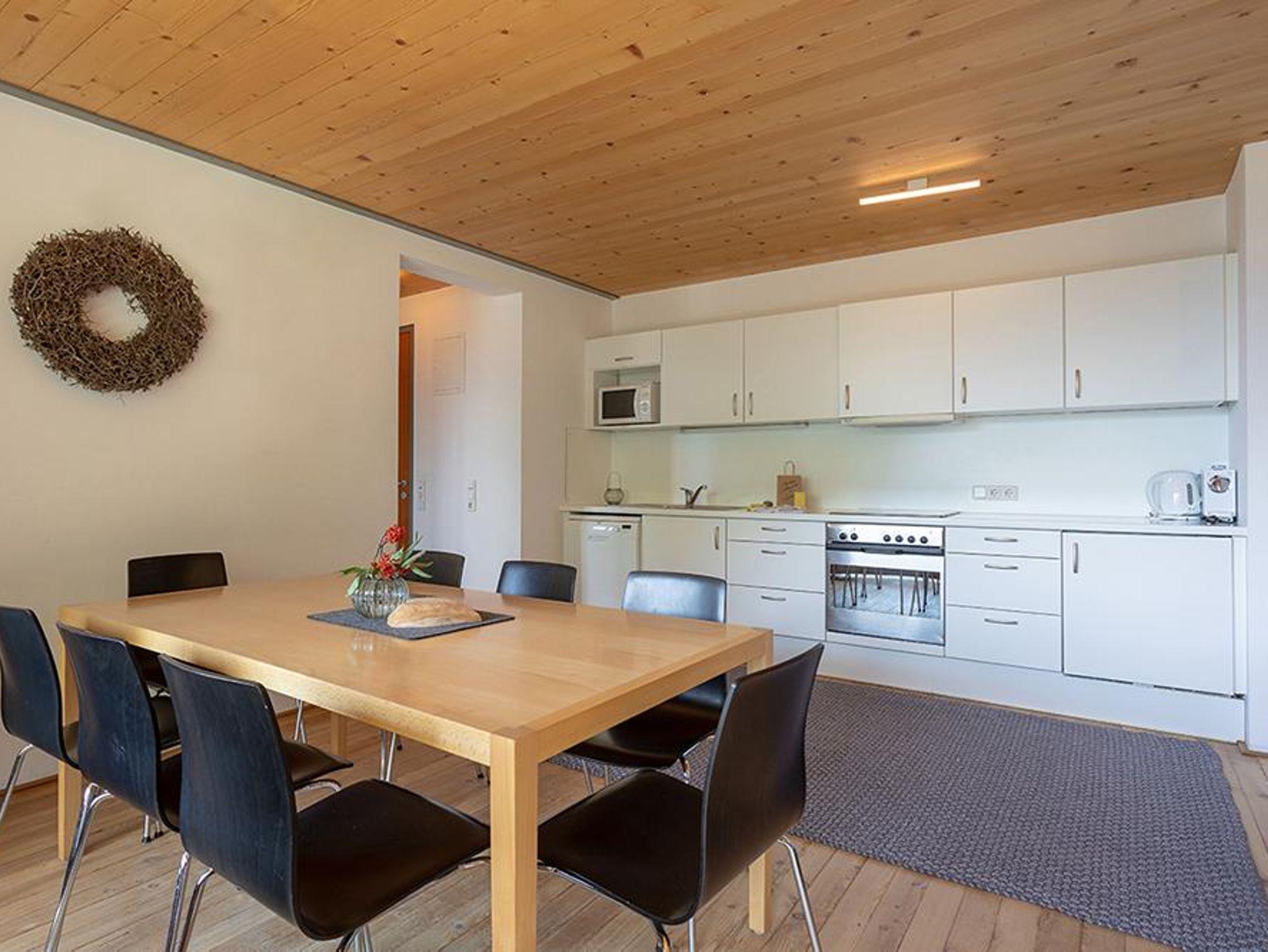 Die gut ausgestattete Küche befindet sich in einem separaten Raum. Der größzügige Wohn- Essbereich bildet den Mittelpunkt dieses besonderen Appartements. Im Parterre liegend bietet diese Ferienwohnung mit 65 m² Platz für 2 bis 6 Personen.