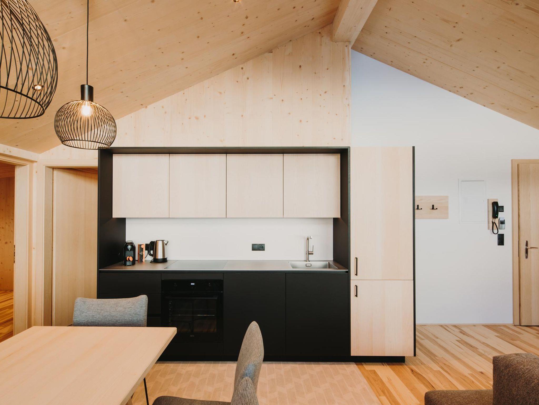 In den Sommermonaten 2020 & 2021 hat sich viel getan, denn unser ehemaliges und beliebtes Kleine Alpin***Hotel garni wurde von grundauf saniert. „Vieles können, nichts müssen“ lautet die Devise in unserem neuen Alpin und soll Euch als Gast vermitteln, dass es bei uns ziemlich unkompliziert und easy abläuft. Die neuen Doppel- und Familienstudios, ausgestattet mit Kitchenetten, laden dazu ein, kleine Gerichte zu kochen oder Speisen aus unserem Genusskühlschrank zu erwärmen. Bei der Einrichtung unserer Studios & Suites haben wir viel Wert auf Natürlichkeit sowie den Baustoff Holz gelegt. Gemütlichkeit gepaart mit Funktionalität war uns wichtig, das helle Eschenholz sorgt sogleich für eine freundliche Atmosphäre. Highlight ist unser neuer Wellnessbereich mit einem Indoor-Erlebnispool mit Liegebereich, einem neuen Saunabereich mit finnischer Sauna, Infrarotkabine und Kräuterdampfbad sowie einem Ruheraum und Frischluftbereich.