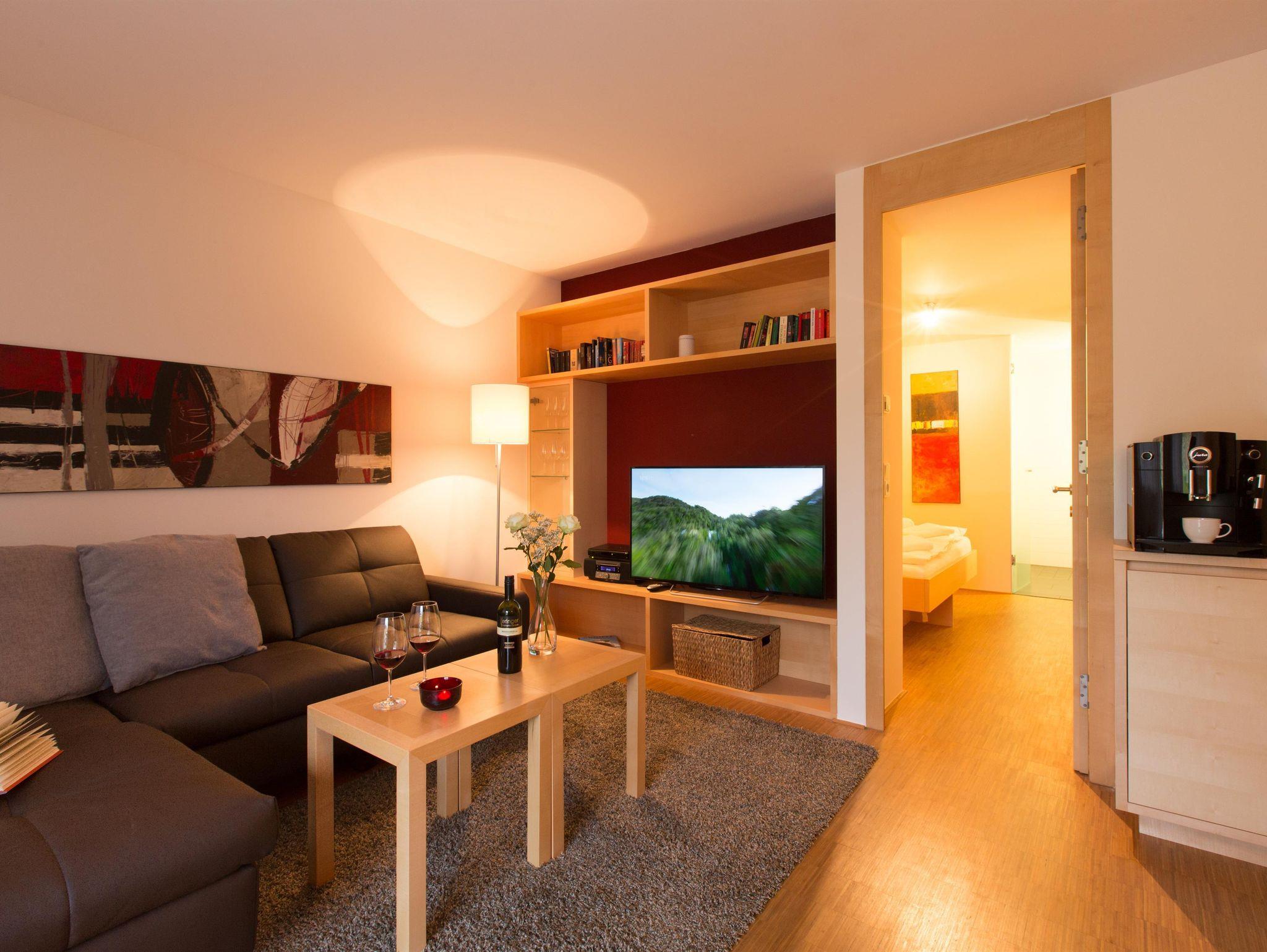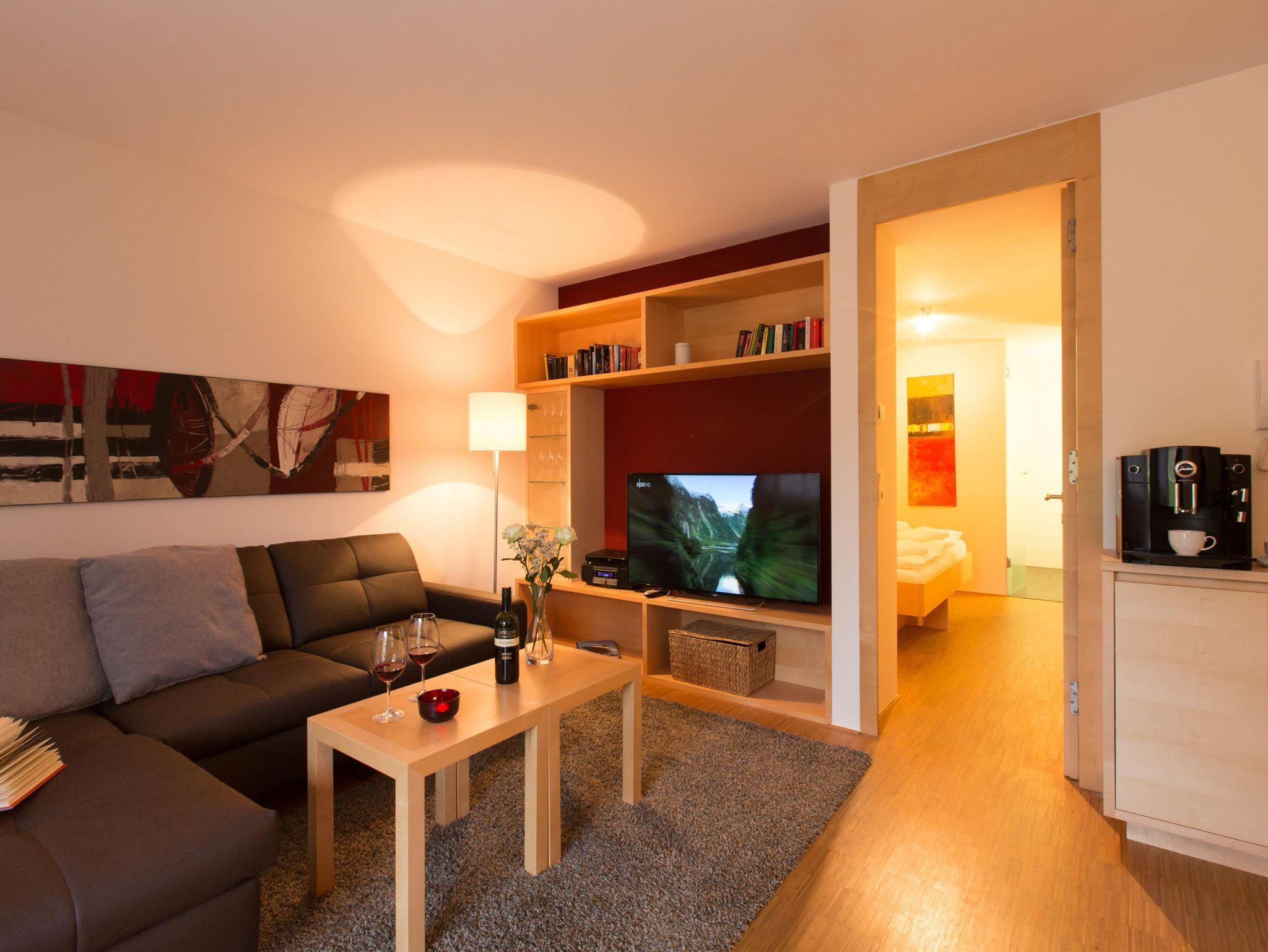Die Ferienwohnung Bergkönig bietet eine luxuriöse Ausstattung in modernem Design. Das Appartement verfügt über 2 getrennte Schlafzimmer mit je einem Badezimmer