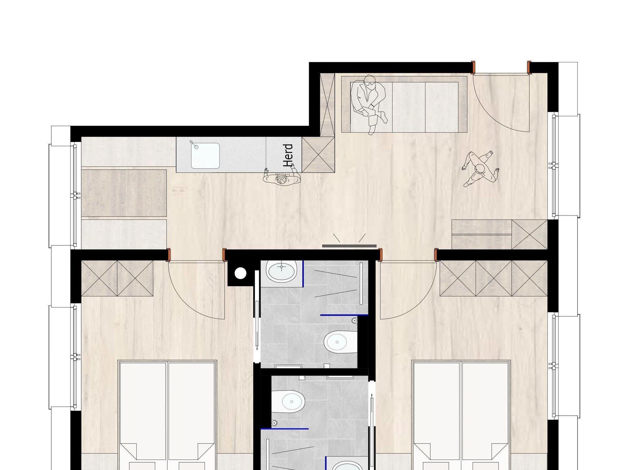Unser kompaktes Raumwunder! Perfekt für Familien mit zwei Kindern oder zwei befreundete Pärchen, in der Familiensuite Alpin 82 findet ihr alles, was Euer Herz begehrt. Offen gestalteter und gemütlicher Wohnraum mit Essbereich und Glasfaser-TV, voll ausgestattete Küche (ohne Mikrowelle) aus hellem Ahornholz. Zwei getrennte Doppelzimmer mit jeweils eigenem Badezimmer mit Dusche und WC, eingerichtet mit beruhigendem und erdendem Eichenholz. Highlight: beim Abendessen den Sonnenuntergang beobachten. Die Familiensuite Alpin 82“ befindet sich im 1. Stock des Nebengebäudes, welches unterirdisch mit dem Hauptgebäude verbunden ist und verfügt über keinen Balkon. Safe und kostenloses WLAN vorhanden.