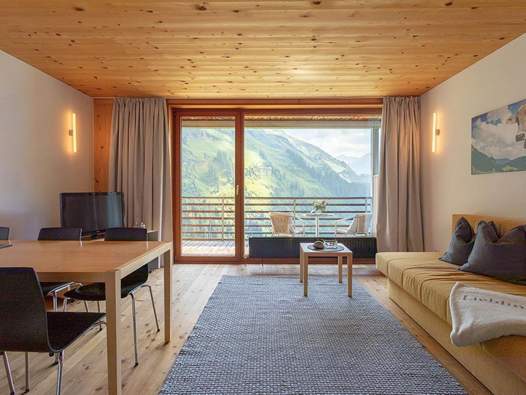 Stimmig ist die schlichte und moderne Ausstattung. Die großen Glasfronten holen die Natur direkt in Ihr zu Hause auf Zeit. Der Boden aus Lärchenholz und die reduzierte Möblierung laden ein, mit allen Sinnen zu geniessen. Hier können sie mit 2 bis 4 Personen ihren Urlaub in Warth, verbringen.