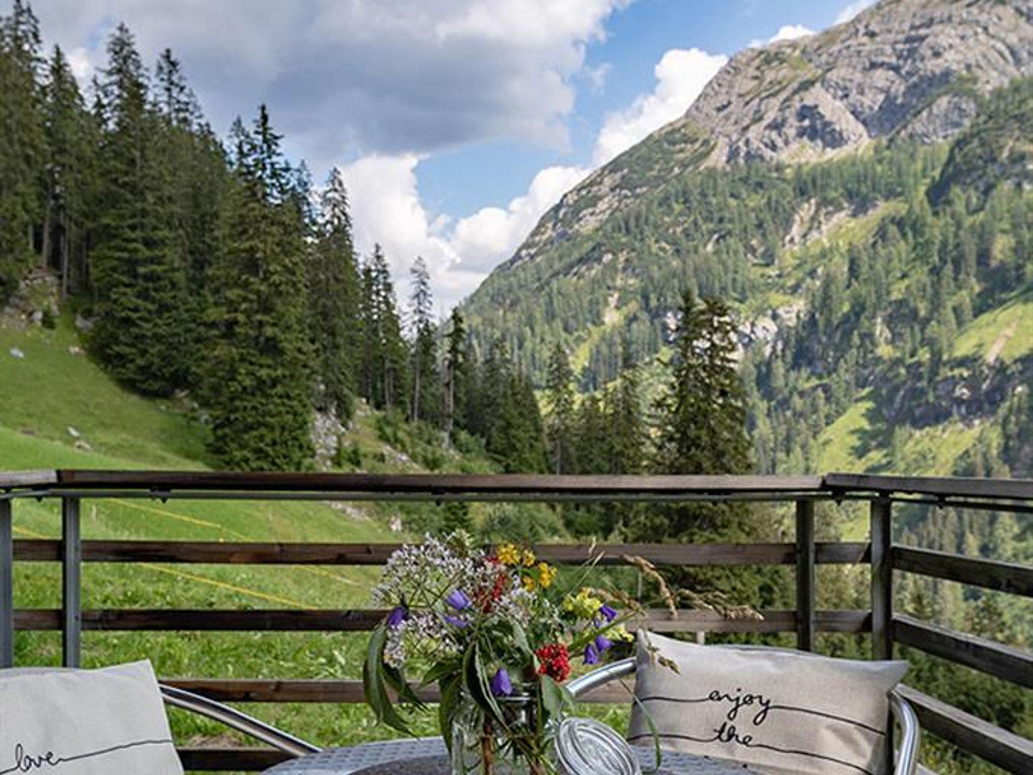 Jeder dieser Ferienwohnungen verfügt über einen Südbalkon mit Sitzmöbel und einem fantastischen Ausblick in Richtung Lech. Im Sommer grasen die Kühe direkt vorm Balkon.