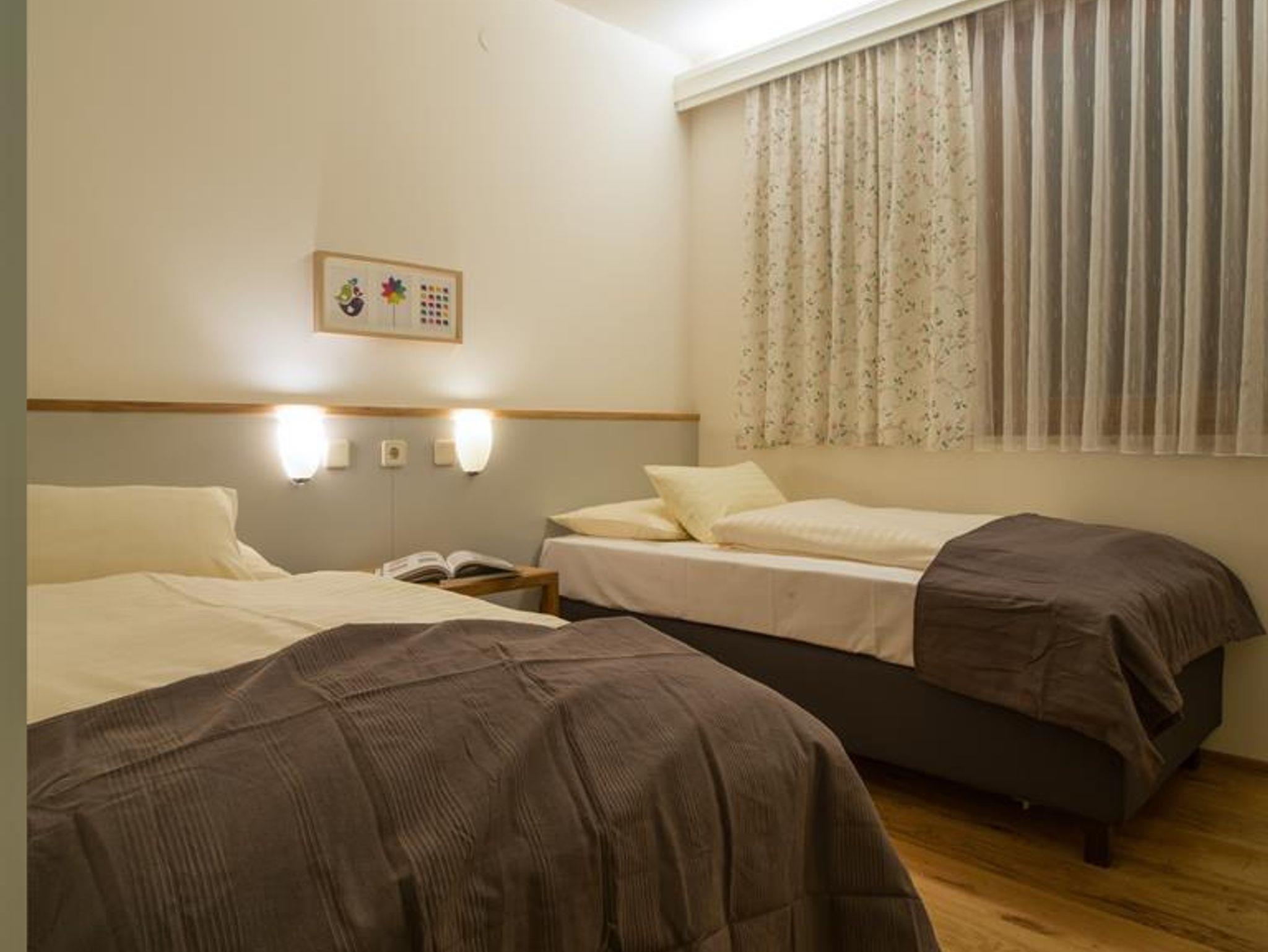• (1 Doppelbett und 2 Einzelbetten) oder (1 Doppelbett,1 Stockbett und 1 Einzelbett)